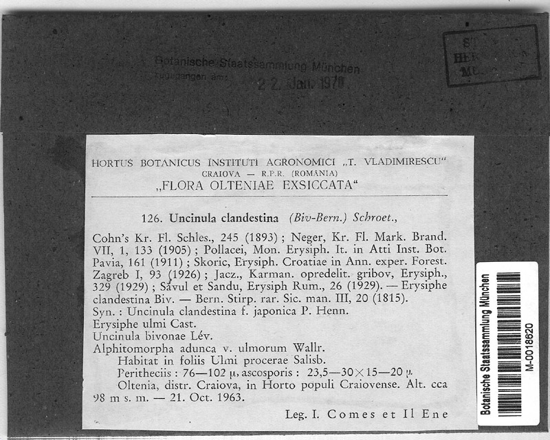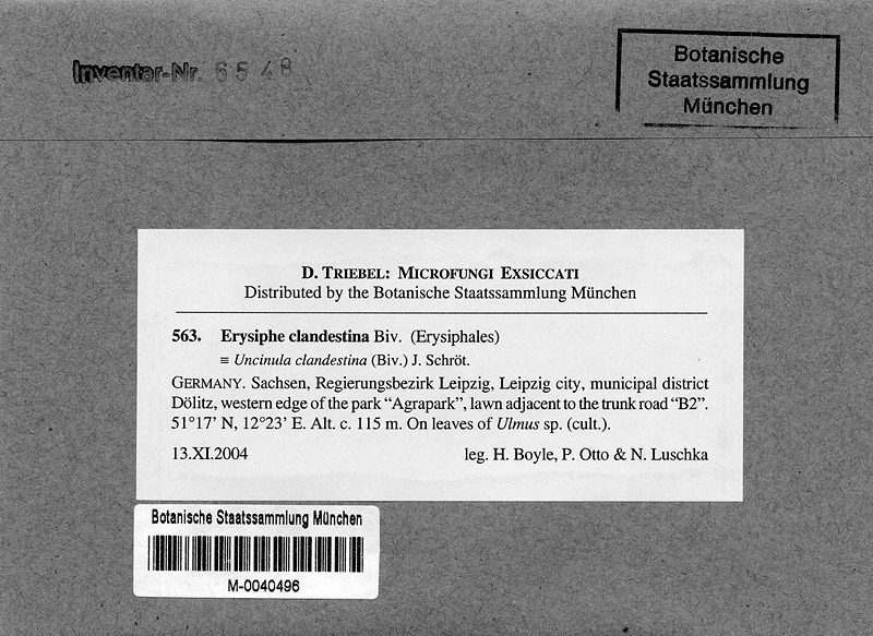 Uncinula clandestina (Biv.) J. Schröt. 1893