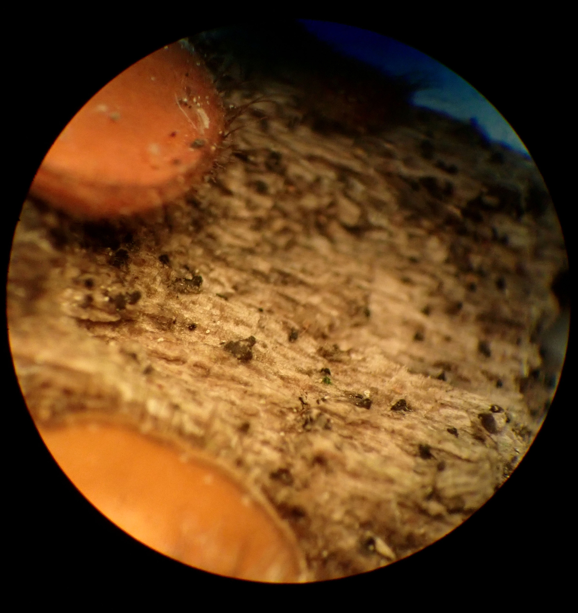 Fruchtkörper: Fruchtkörper zerstreut oder gesellig, anfangs eingesenkt, dann hervorbrechend und fast oberflächlich, kugelig, mit einer kurzen warzenförmigen Mündung, etwa 0,5 mm dick. Gehäuse dünn brüchig, schwarz, grob höckerig oder runzelig, kahl oder mit bräunlichen, septierten Haaren spärlich besetzt.
