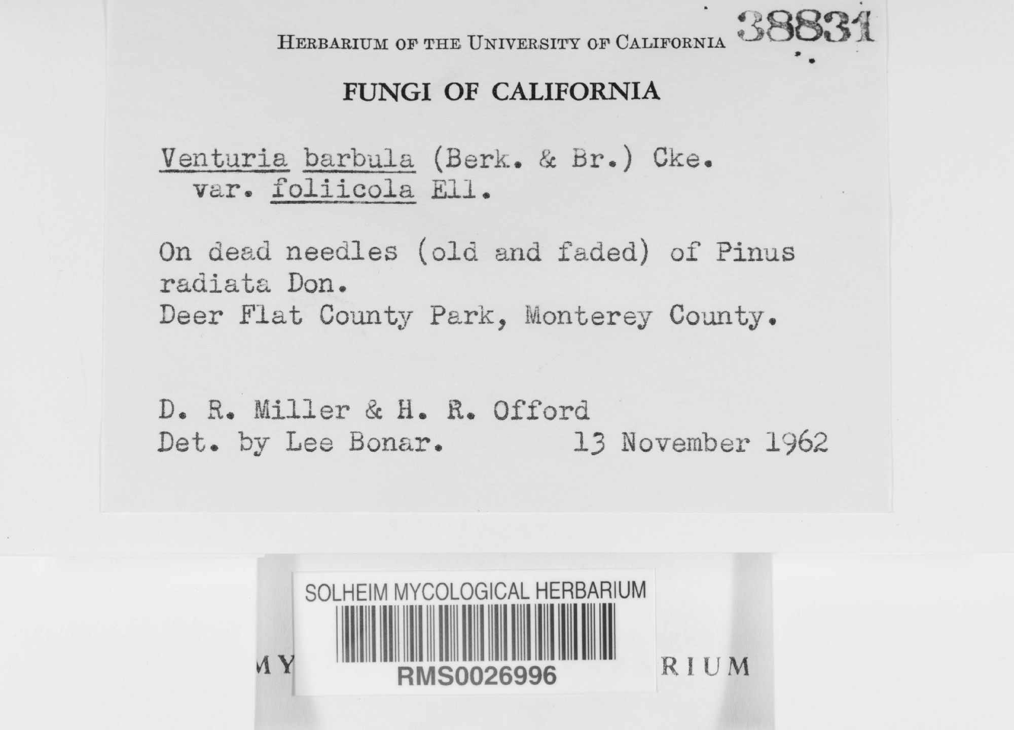 Venturia barbula (Berk. & Broome) Cooke