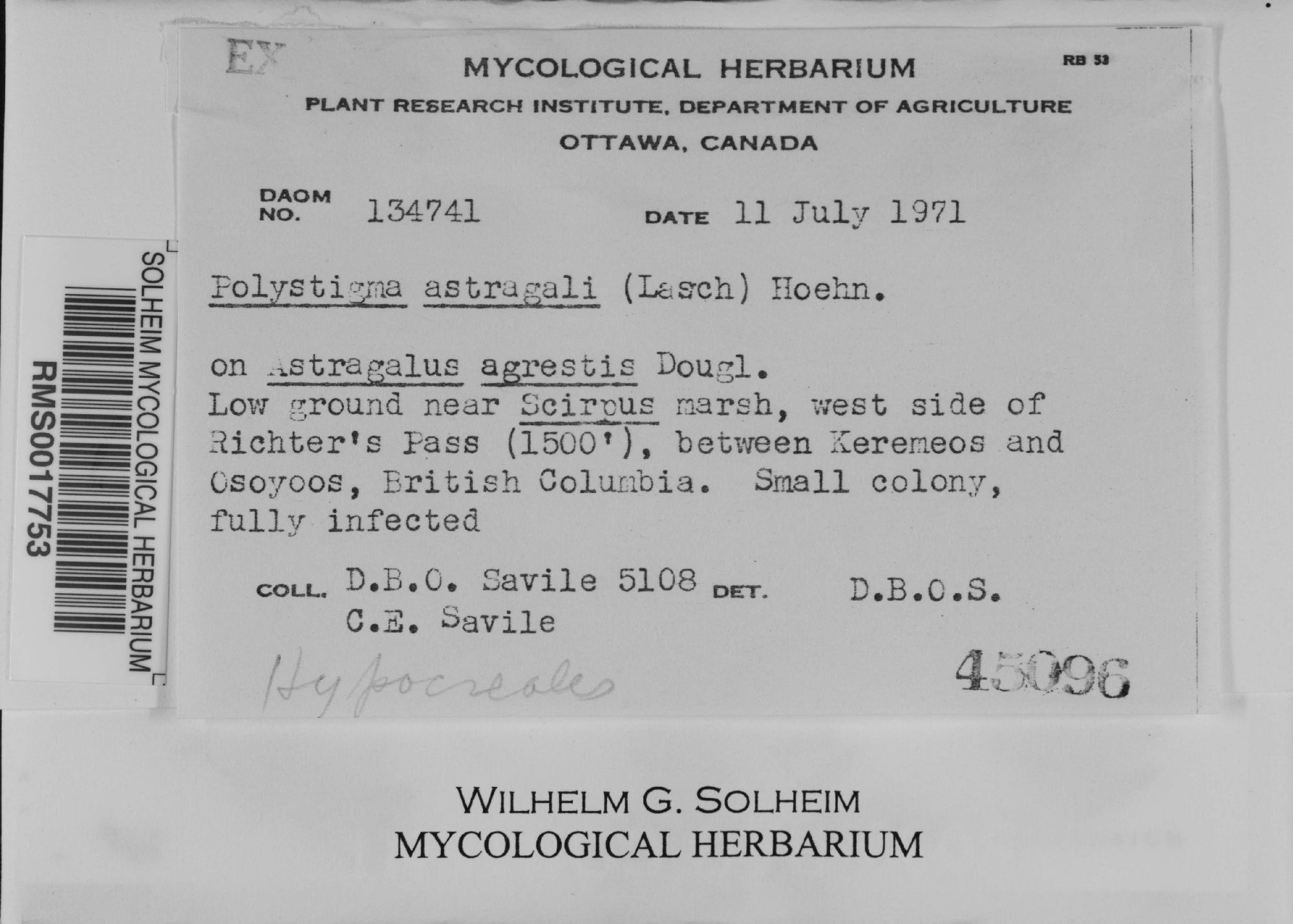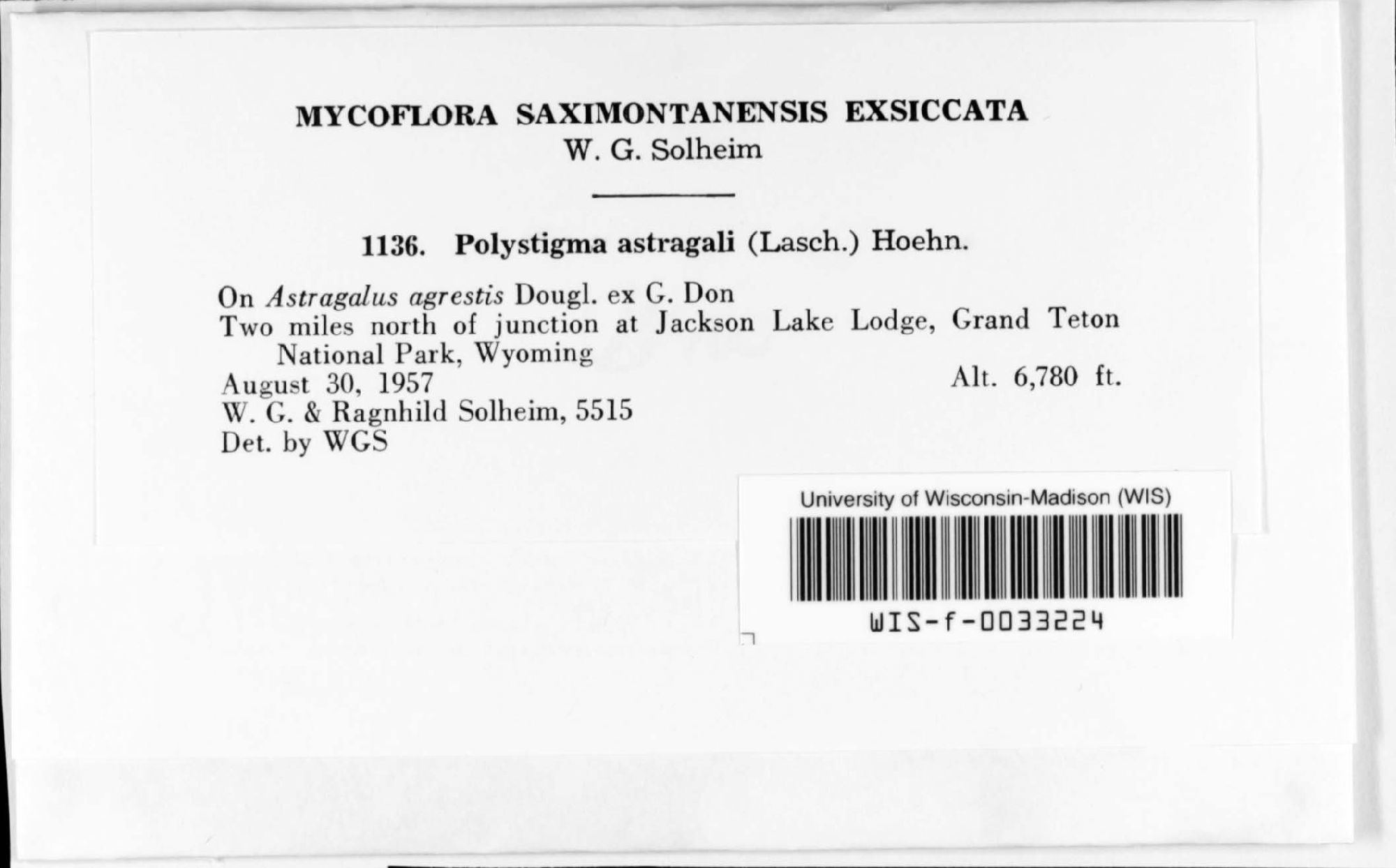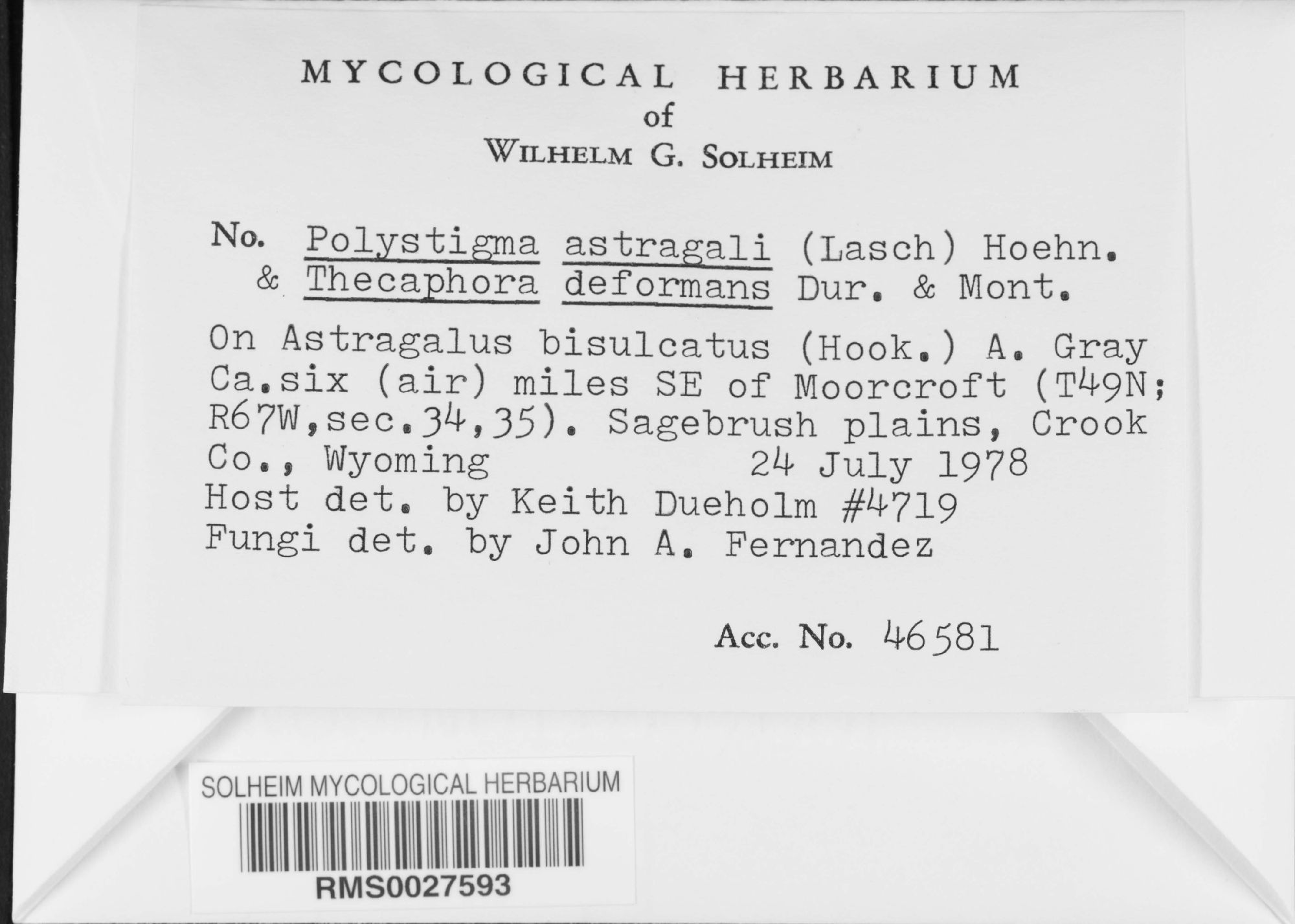 University of Wyoming, Wilhelm G. Solheim Mycological Herbarium (RMS-)