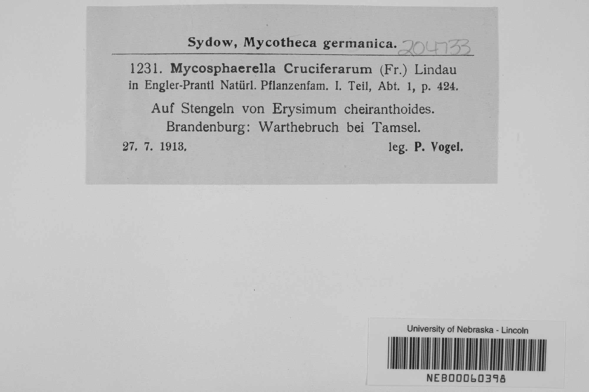 Mycosphaerella cruciferarum (Fr.) Johanson & Magnus
