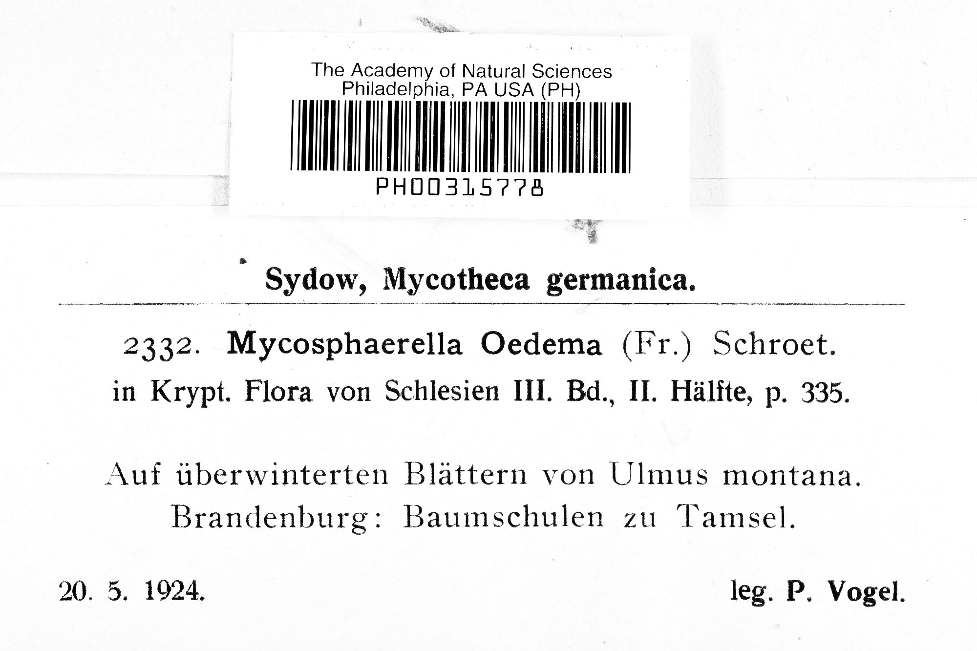 Fruchtkörper: Fruchtkörper herdenweise, meist in grossen rundlichen, blasenförmig aufgetriebenen, grauen Flecken, anfangs von der Oberhaut bedeckt, später nach deren Verwitterung freiliegend, kugelig, 90 — 110 µm breit, schwarz, mit schwach warzenförmiger Mündung.