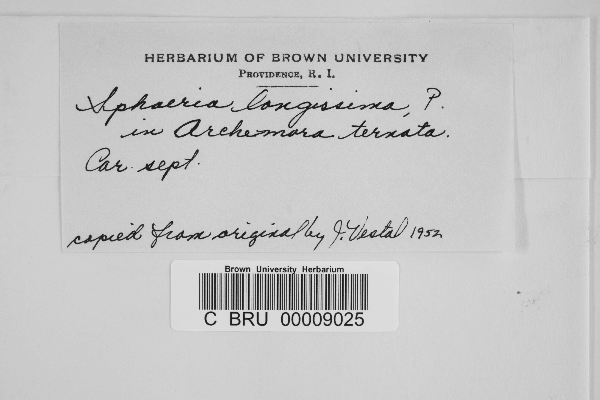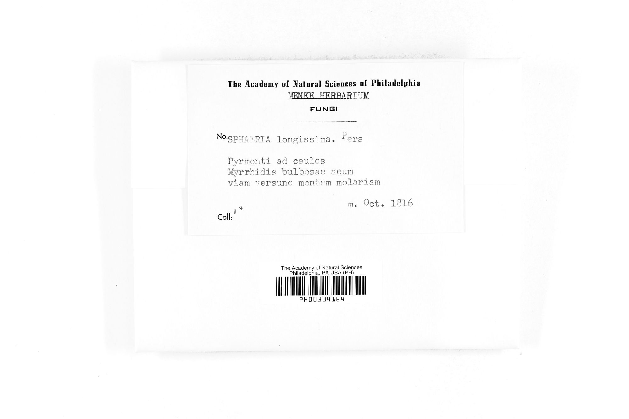 Fruchtkörper: Perithecien unterseits der gebräunten Epidermis eingesenkt, schwarz, sehr lange und schmale linienförmige Streifen von 0,25 mm Breite bildend, kugelig, schwarz, mit kreisrunder Öffnung, 60 — 80 µm breit.