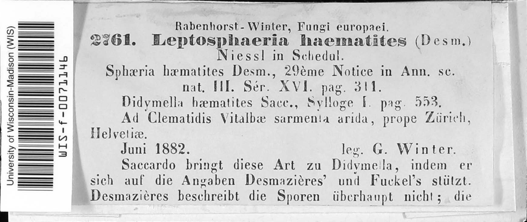 Nodulosphaeria haematites (Niessl) Petr. 1921