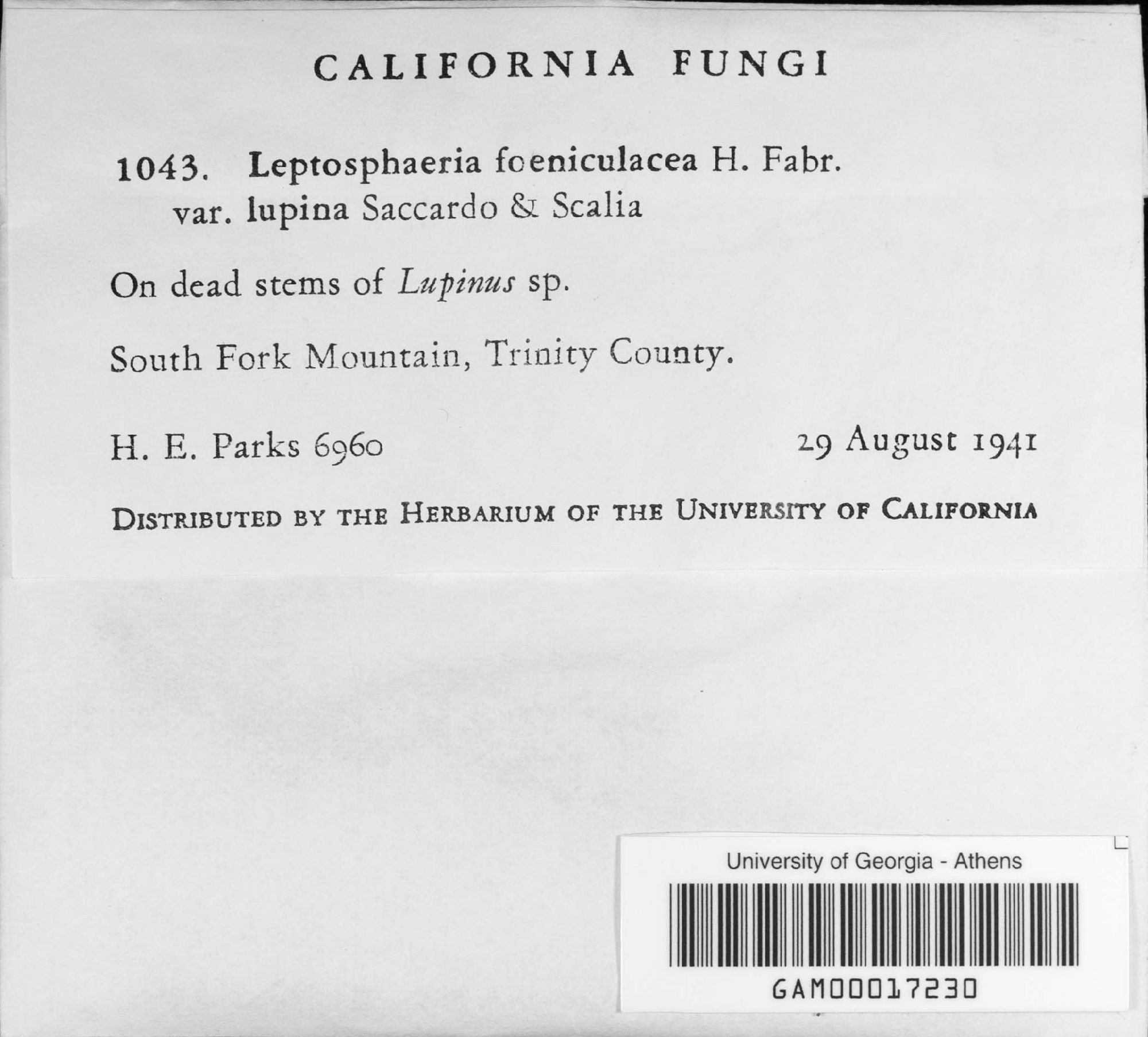 University of Georgia, Julian H. Miller Mycological Herbarium (GAM-)