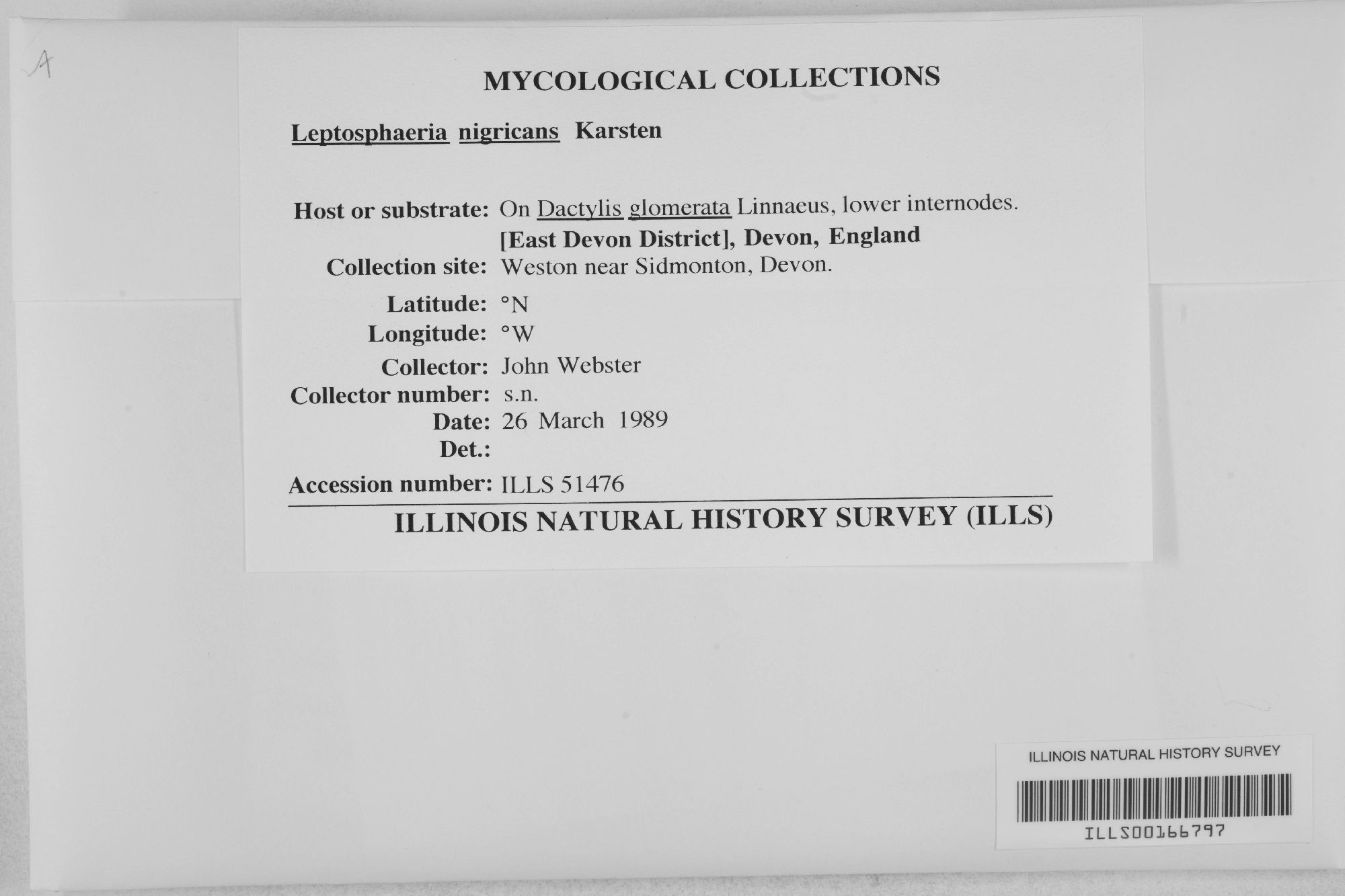 Leptosphaeria nigricans P.Karst.