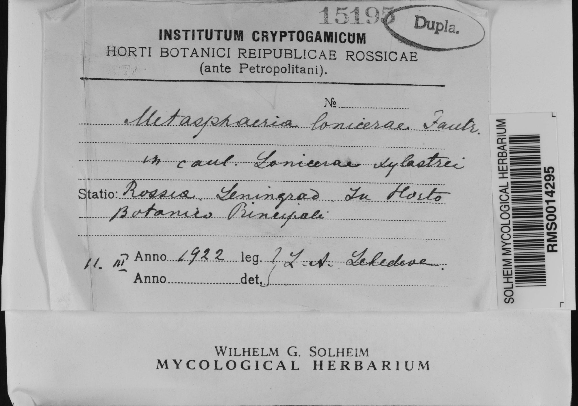 Metasphaeria lonicerae Fautrey 1892