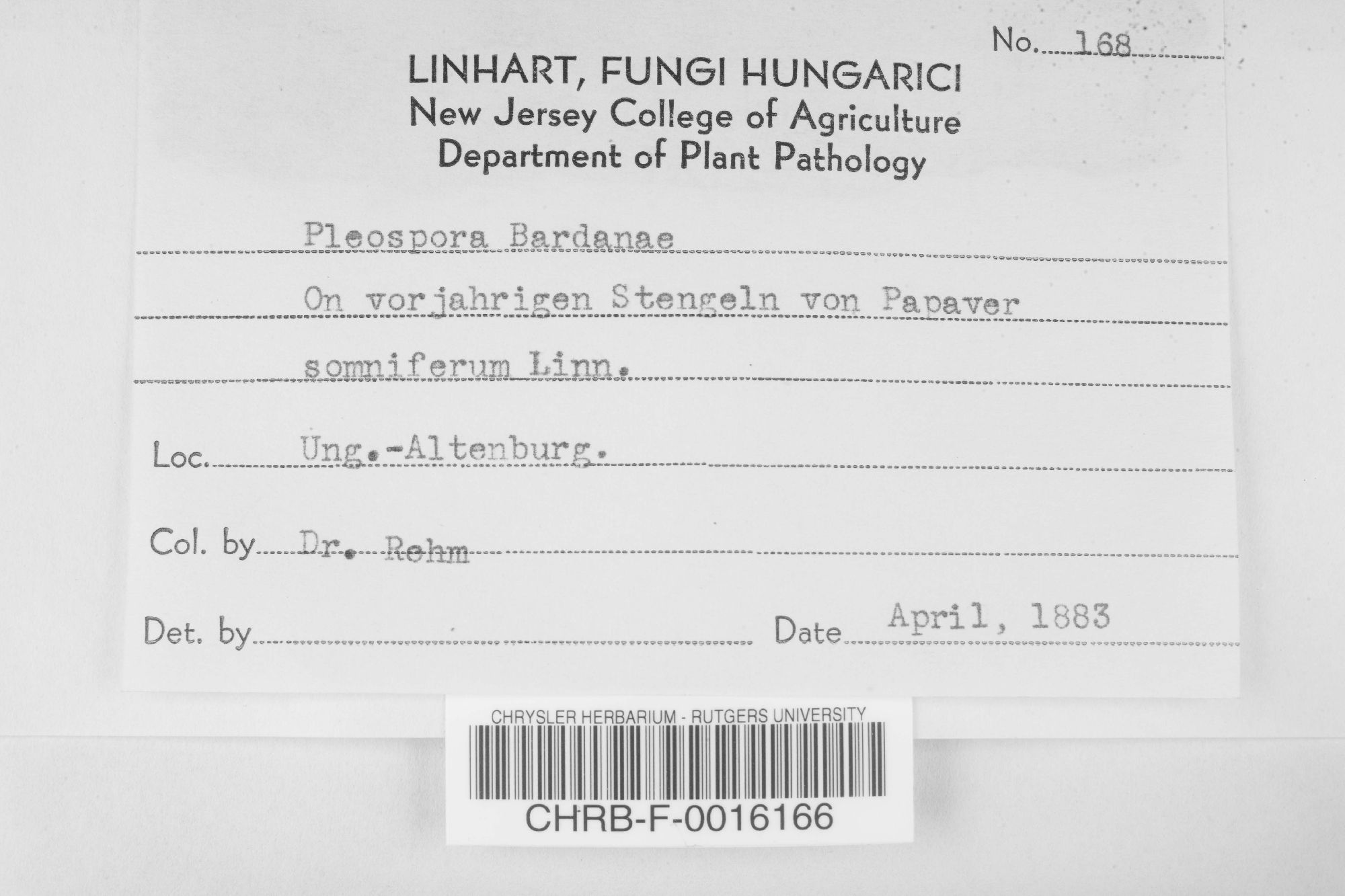 Pleospora pellita var. bardanae (Niessl) Wehm. 1961