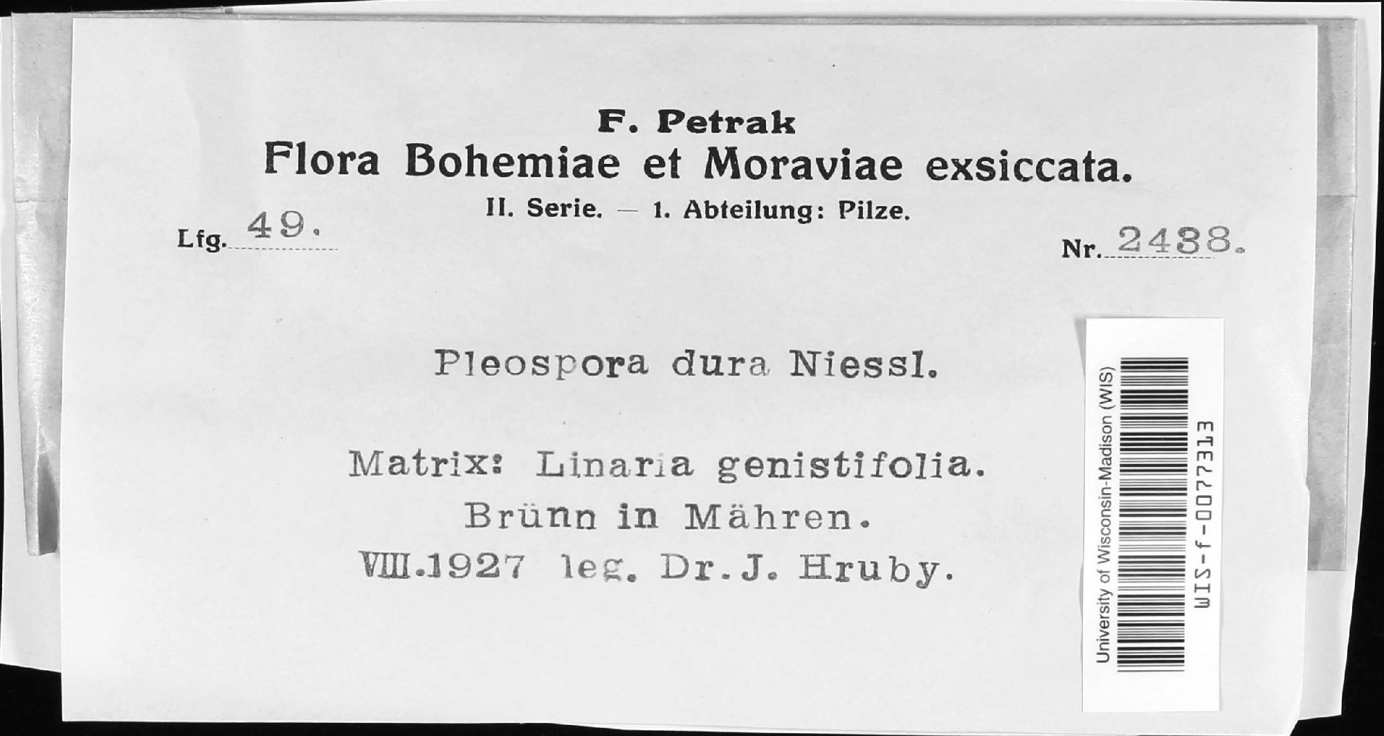 Fruchtkörper: Perithecien in dem nicht veränderten oder mitunter etwas geschwärzten Substrat herdenweise nistend, oft dicht gedrängt in das innere Rindengewebe eingesenkt, bedeckt, halbkugelig oder kugelig, mit flachem, faserigem Grunde, wenig niedergedrückt, nicht zusammenfallend, derb, lederartig, schwarz, mit kurz zylindrischer, stumpfer, breiter, glatt durchbohrter Mündung vorragend, 0,4—0,5 mm breit.