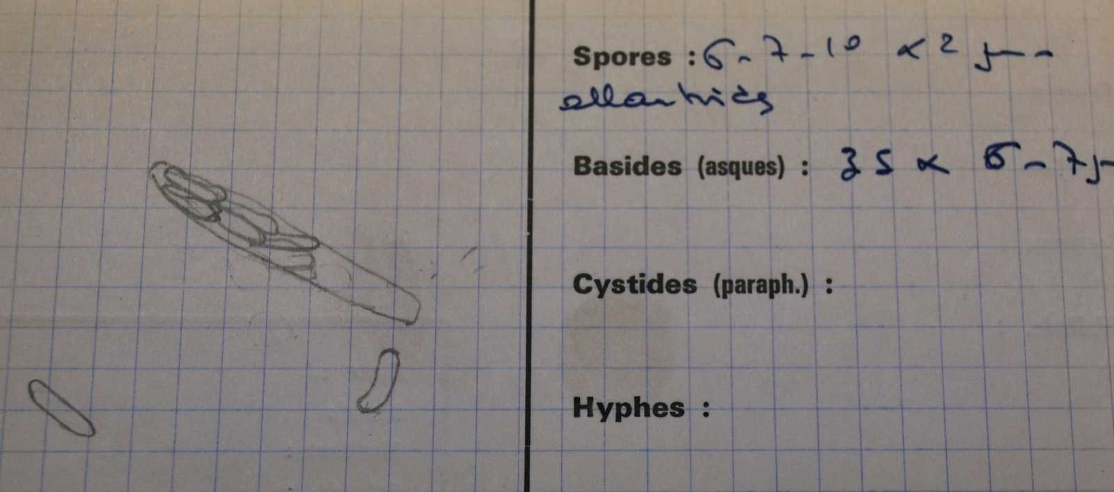 Sporen: Schläuche keulenförmig, sitzend, 32—40 µm lang, 4—5 µm breit, achtsporig. Sporen zweireihig, zylindrisch, gebogen oder fast gerade, 6 —8 µm lang, 1,5 bis 2 µm breit, farblos. Konidien zylindrisch, gebogen, 4 µm lang, 1 jx breit, farblos, in vielkammerigen Früchten mit strahlig geordneten Fächern und gemeinschaftlicher Mündung, in kleinem Stroma.