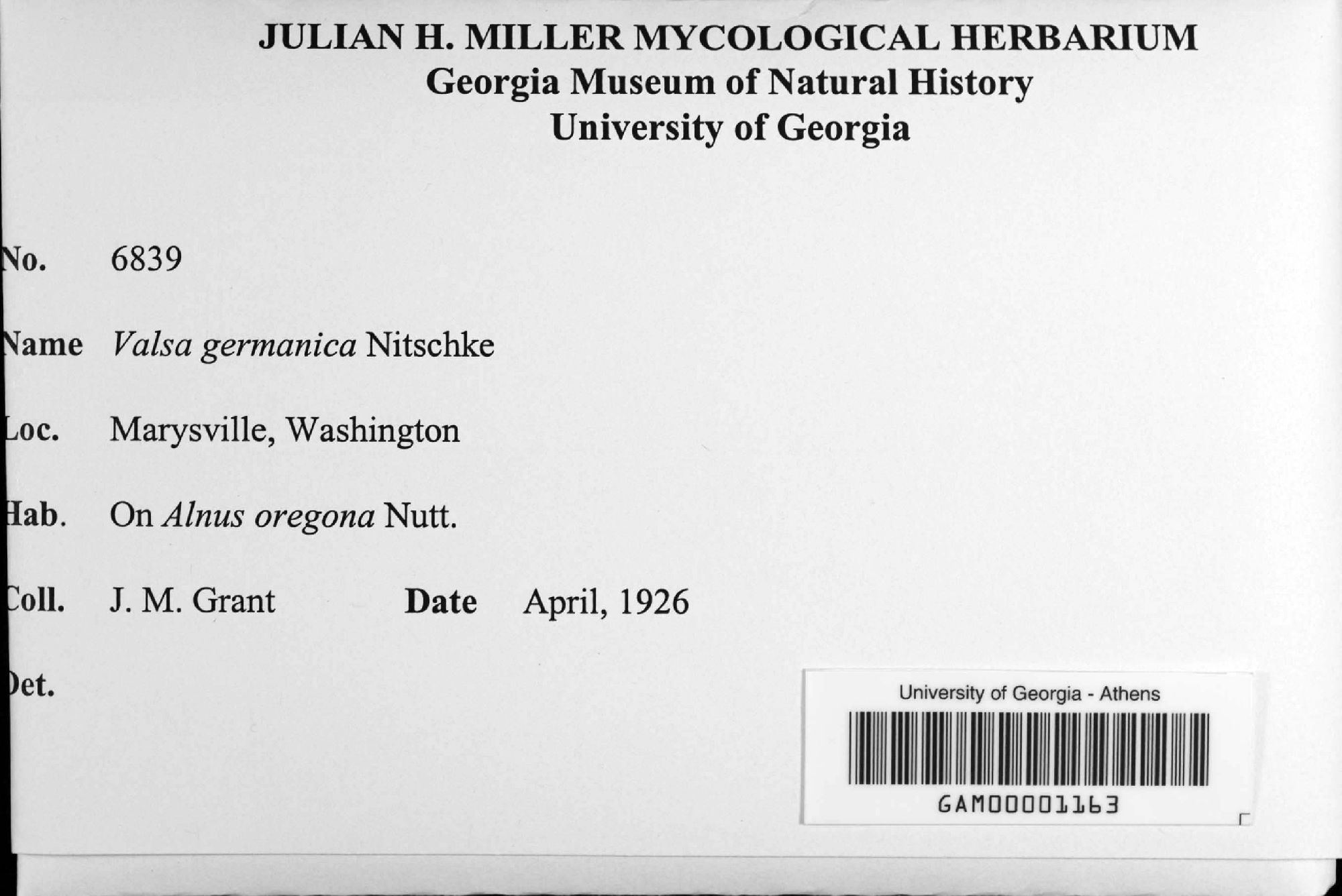University of Georgia, Julian H. Miller Mycological Herbarium (GAM-)