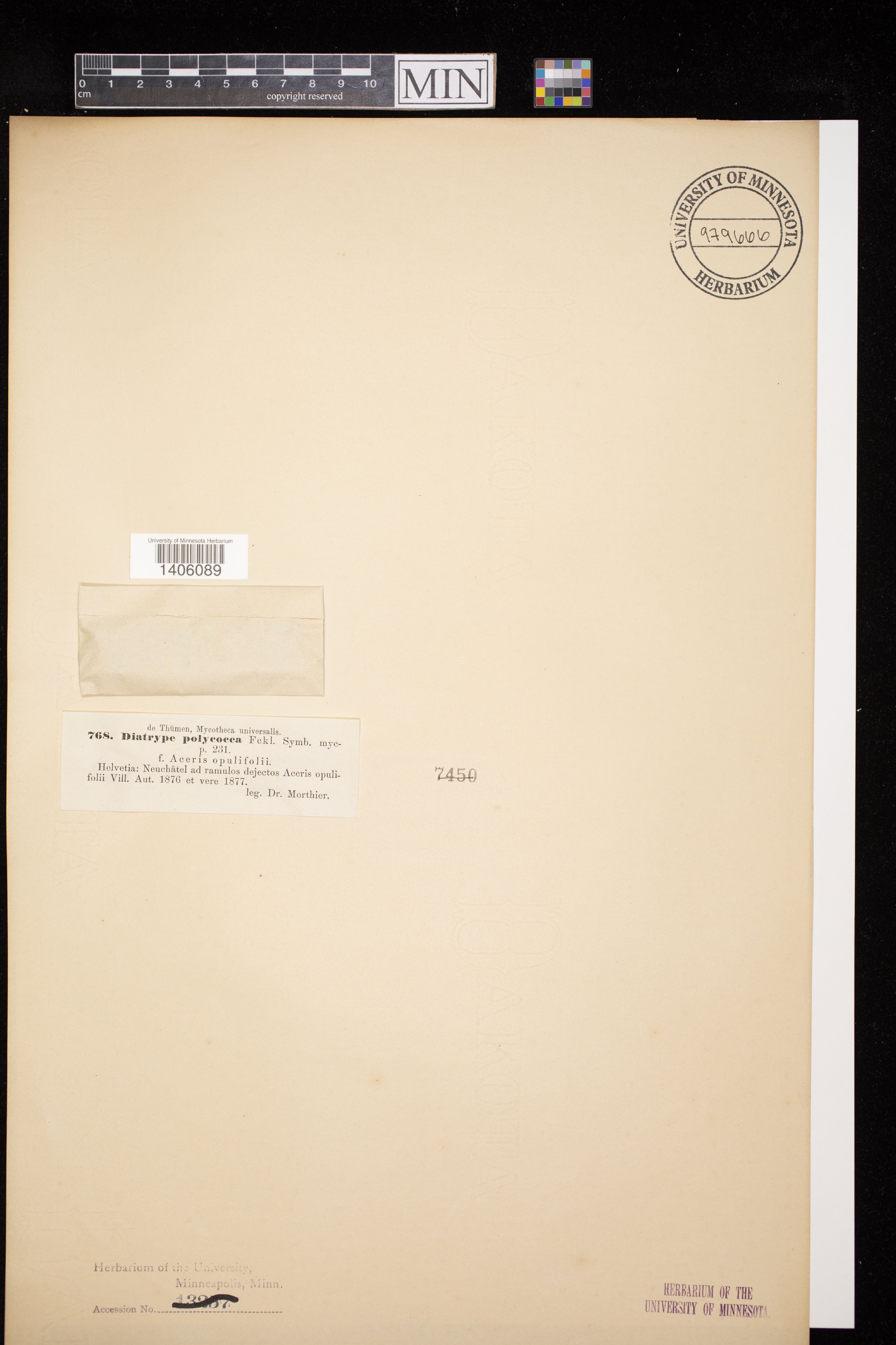 Fruchtkörper: Stromata zerstreut, mitunter auch zu zwei oder drei einander genähert und zusammenfliessend, flach polsterförmig, mit schwach gewölbtem, später oft flachem Scheitel, im Umriss kreisrund oder häufiger etwas kantig und unregelmässig, anfangs vom Periderm bedeckt, das zunächst nur in der Mitte der niedrigen Pusteln durchbrochen, später aber mehr und mehr zurückgedrängt wird, und endlich die geneigten Ränder der Stromata allein bekleidet, so dass dann die schwarze, von den ansehnlichen, gefurchten Perithecienmündungen rauhe Stromascheibe frei hervortritt. Perithecien ziemlich zahlreich in einem Stroma, dicht stehend, kugelig oder eiförmig, mit dicken, weit vorragenden, stumpf kegelförmigen, vier- bis sechsfurchigen Mündungen, schwarz.
