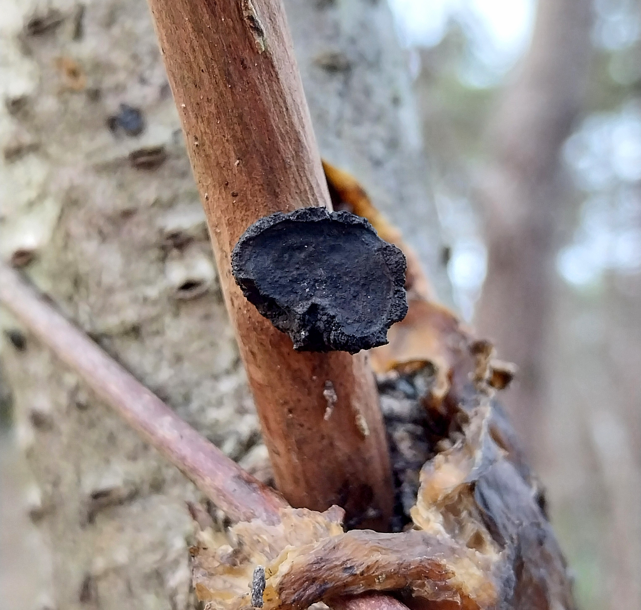 Vorkommen: An dürren Stämmchen und ästen von Vogelbeere oder Eberesche (Sorbus aucuparia).