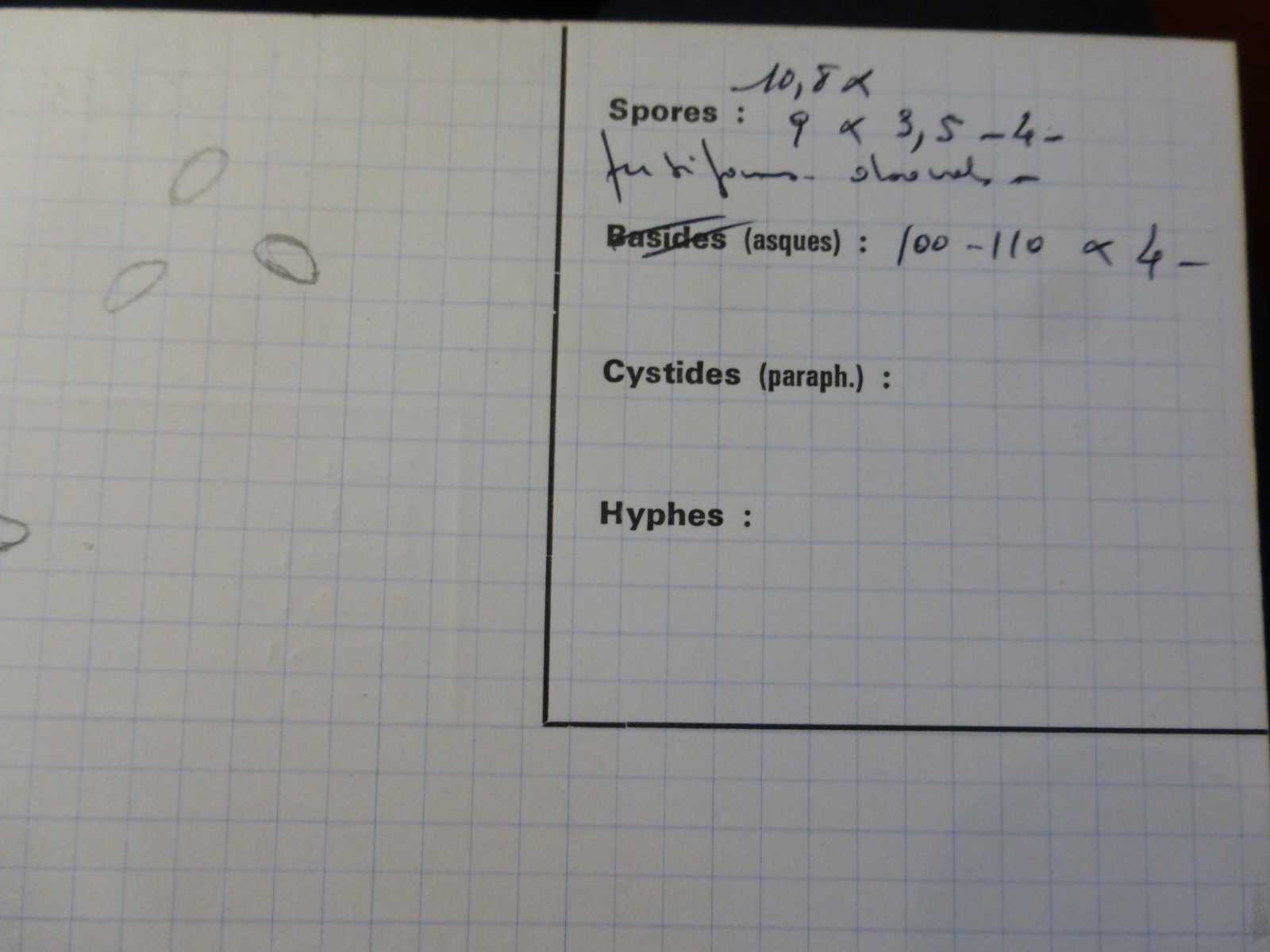 Sporen: Schläuche zylindrisch, gestielt, sporenführender Teil 44—60 µm lang, 5 µm breit, achtsporig. Sporen einreihig, ellipsoidisch, einseitig abgeflacht, 6—8 µm lang, 3—4 µm breit. Paraphysen fadenförmig.
