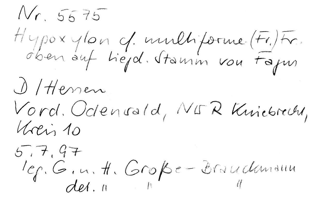 Vorkommen: Auf festem Holze von Laubhölzern, besonders Eiche und Buche