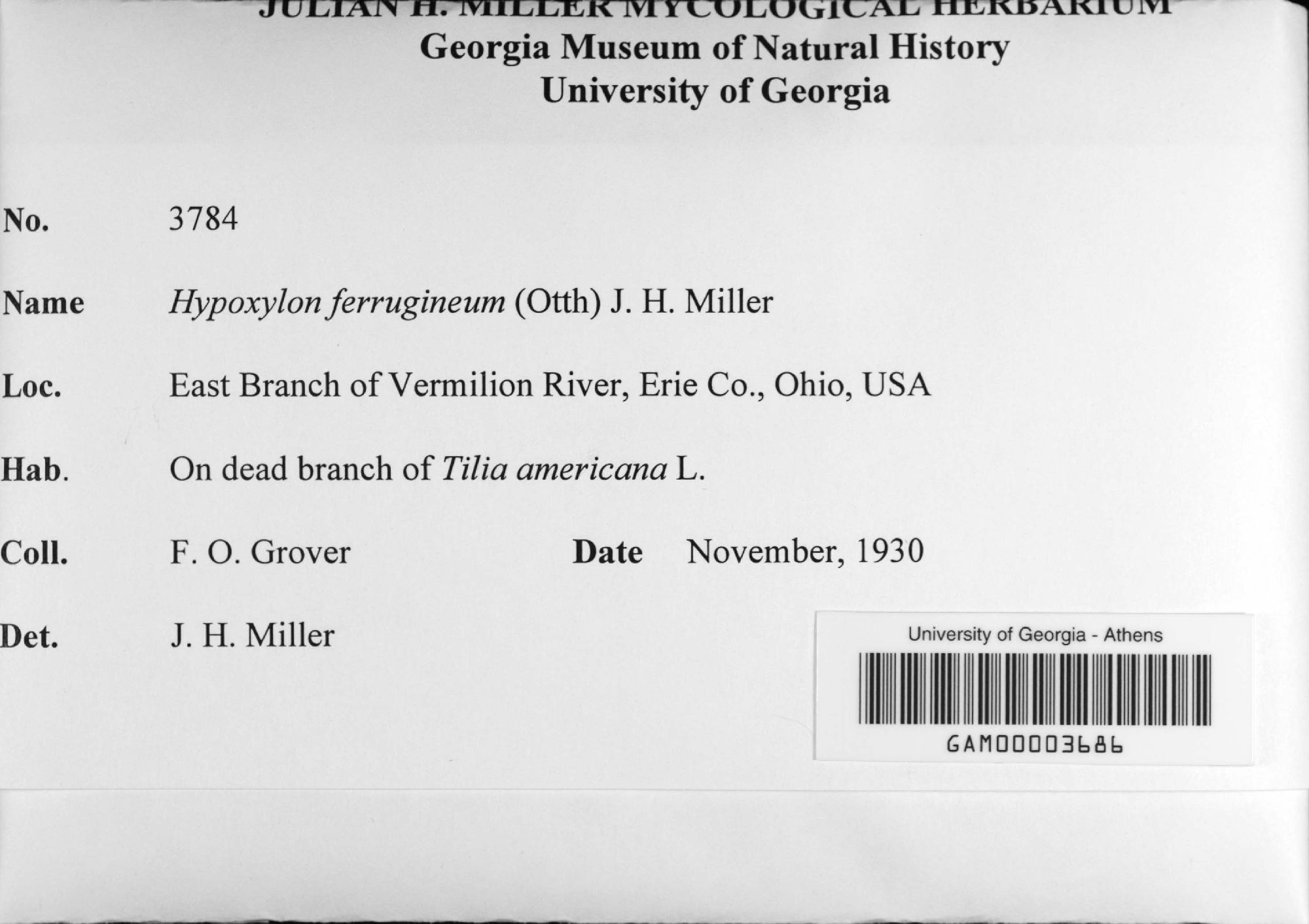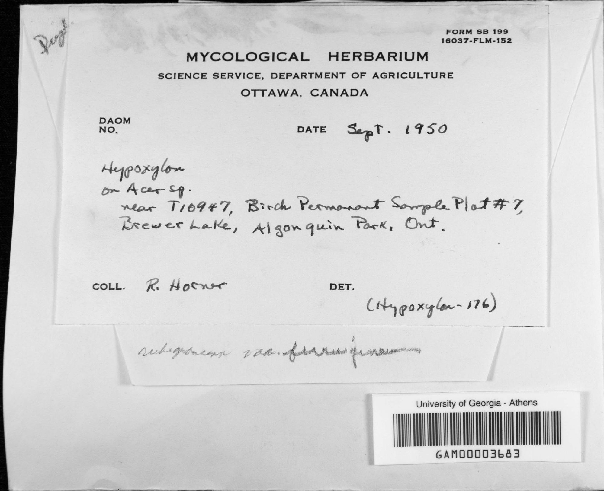 Hypoxylon rubiginosum var. ferrugineum (G.H. Otth) J.H. Mill. 1961