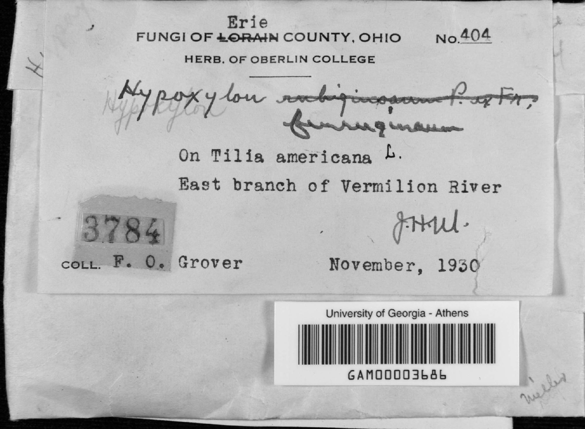 Hypoxylon rubiginosum var. ferrugineum (G.H.Otth) J.H.Mill.