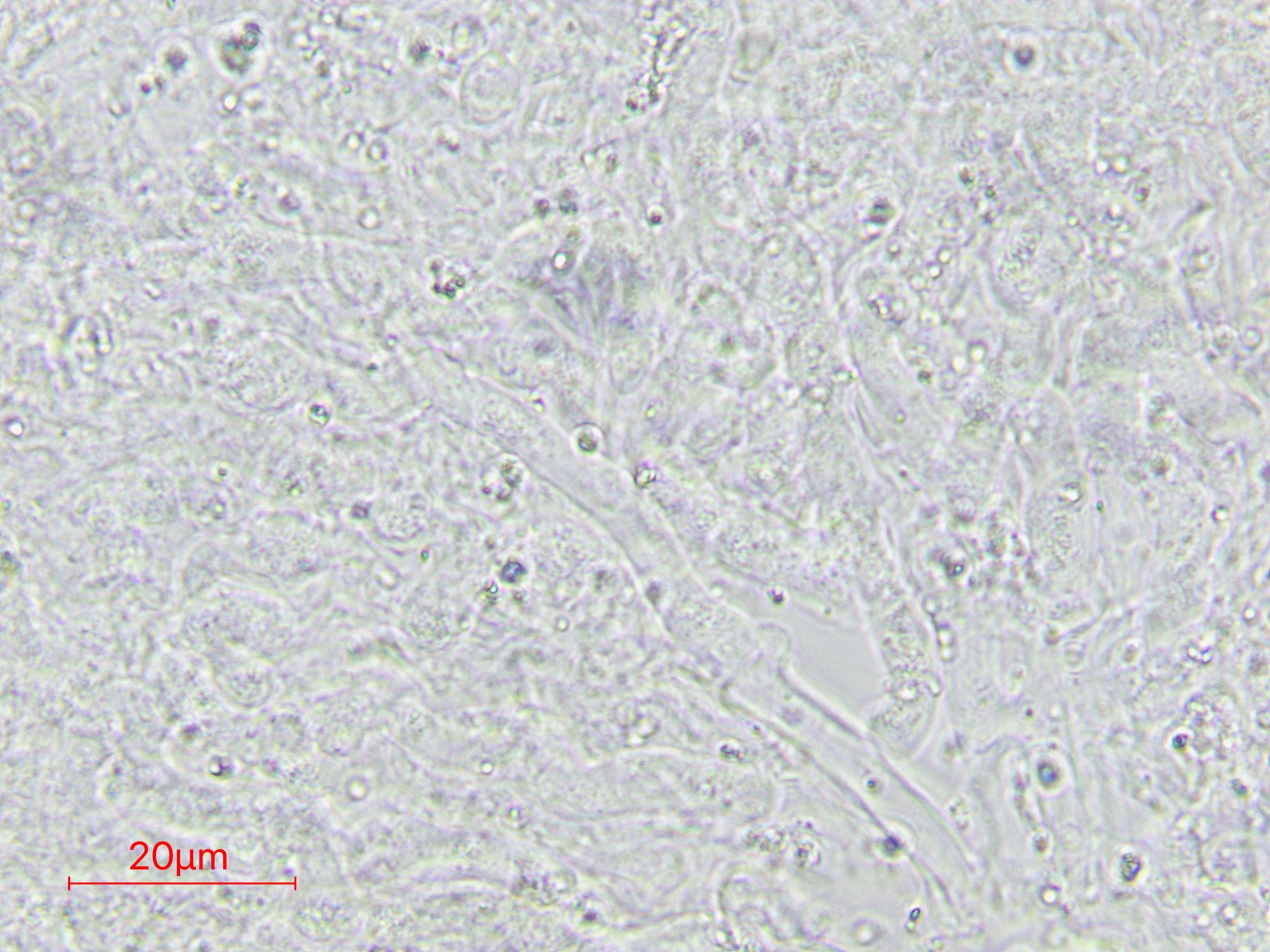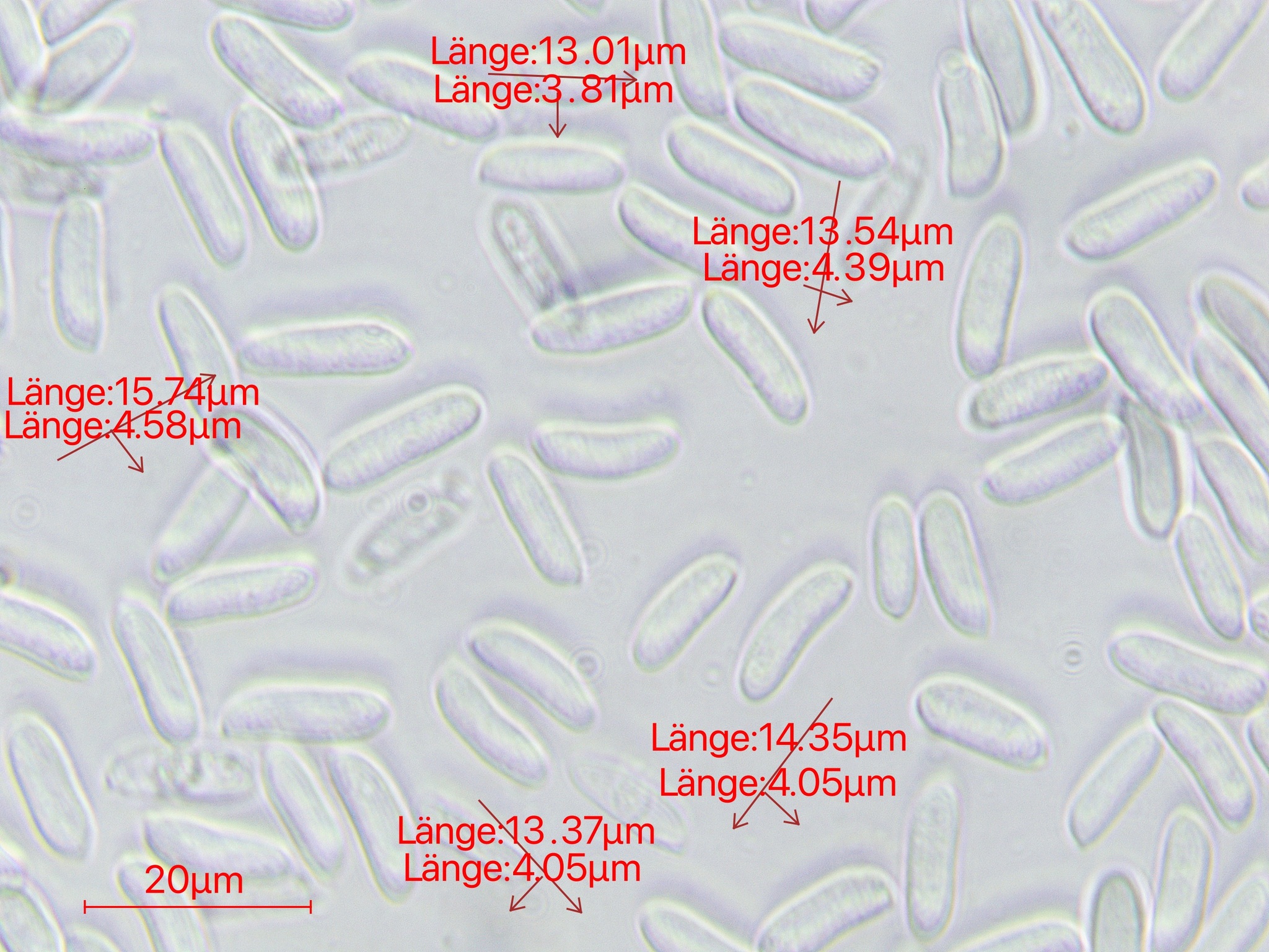Sporen: Sporen länglich, gerade oder etwas gebogen, 15—17 µm lang, 4—5 µm breit, farblos.