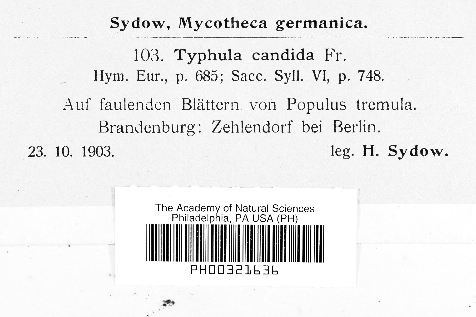 Fruchtkörper: Fruchtkörper einfach, weiss, mit verkehrteiförmiger, stumpfer Keule und deutlichem, kurzem, kahlem Stiel.
