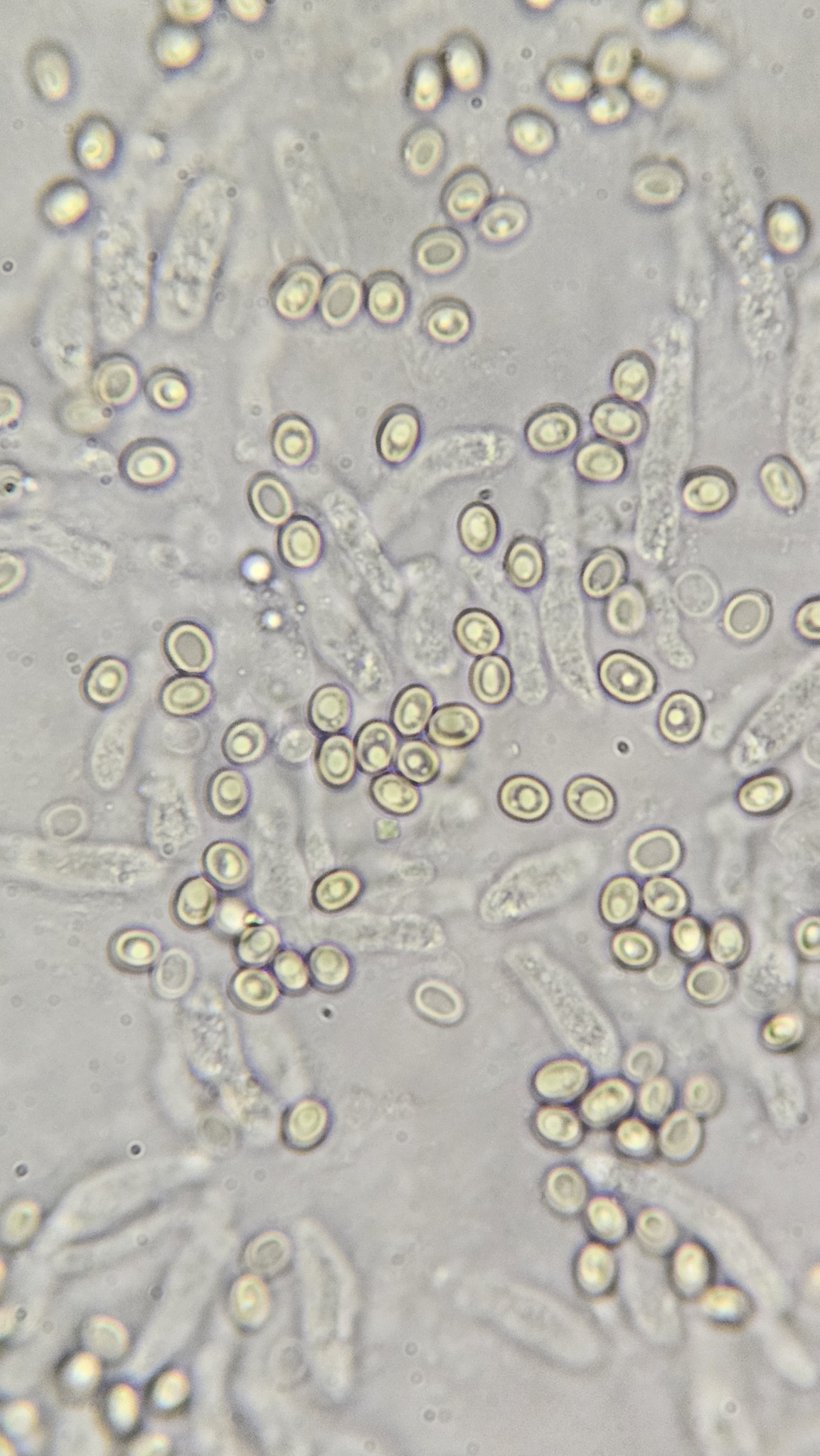 Sporen: Sporen eiförmig oder breit ellipsoidisch, fast kugelig, 4—6 µm lang, 3-5 µm breit, mit glatter, gelbbräunlicher Membran.
