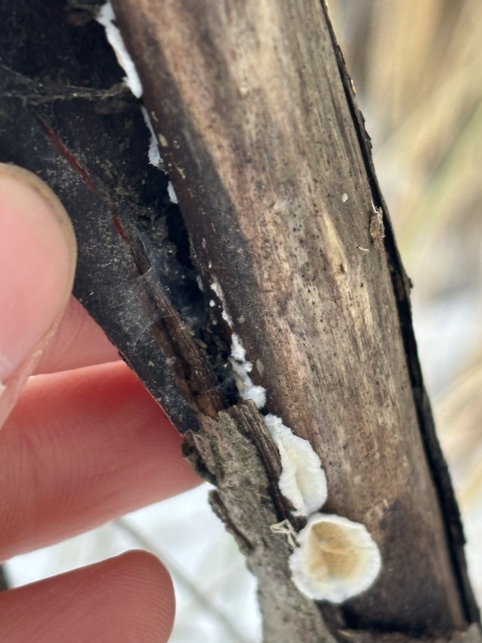 Vorkommen: An abgefallenen Asten verschiedener Laubhölzer, Herbst bis Frühjahr.