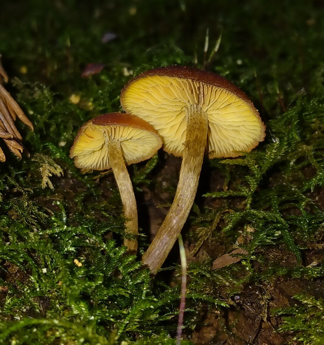 Lamellen: oben verdünnt, anfangs staubig, zuweilen seidenhaarig, unten braunfaserig. Lamellen angewachsen, später sich ablösend, dichtstehend, anfangs gelb, später rostfarben, zuweilen etwas herablaufend; Schneide besetzt mit haarförmigen Cystiden.