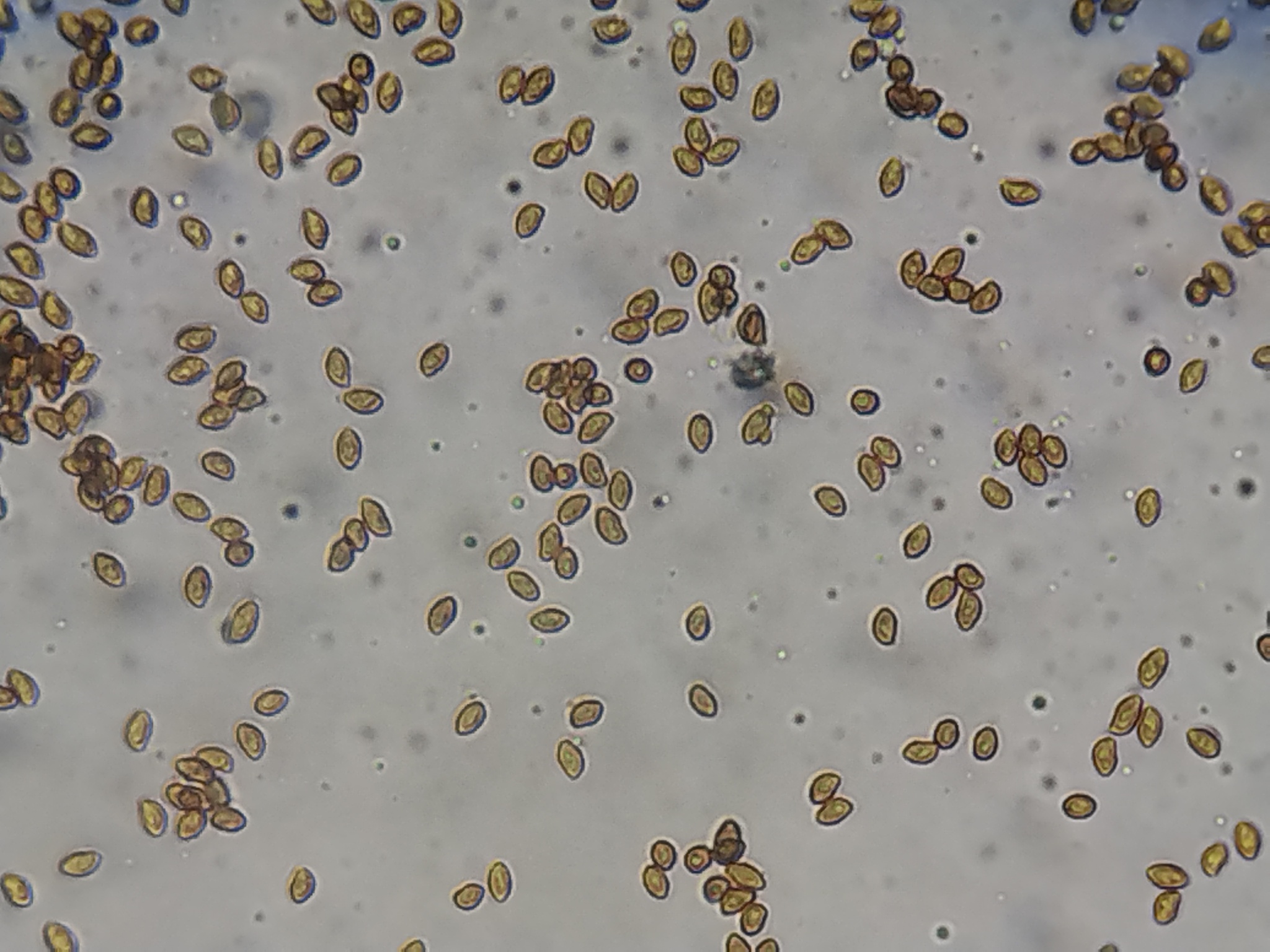 Sporen: Sporen elliptisch, 8—10 µm lang, 5—6 fi breit; Membran gelblich, glatt.