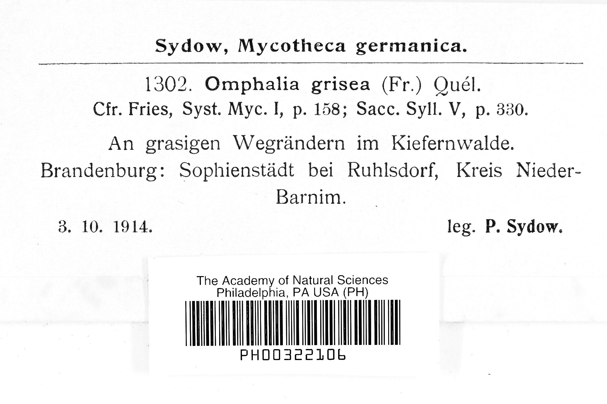 Omphalia grisea (Fr.) Quél. 1872