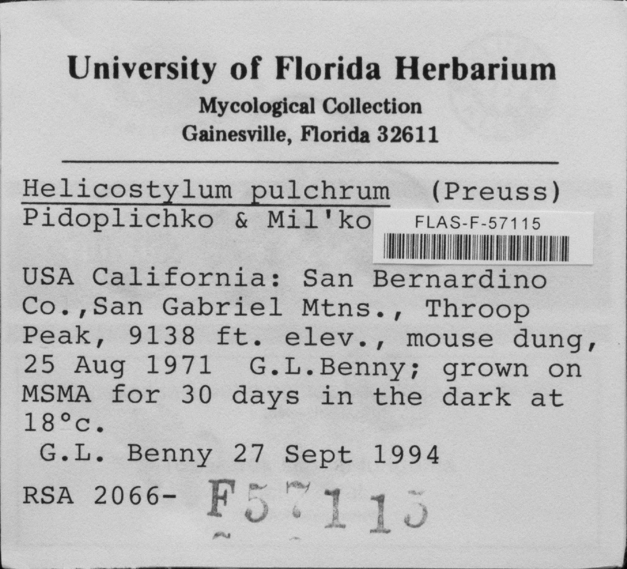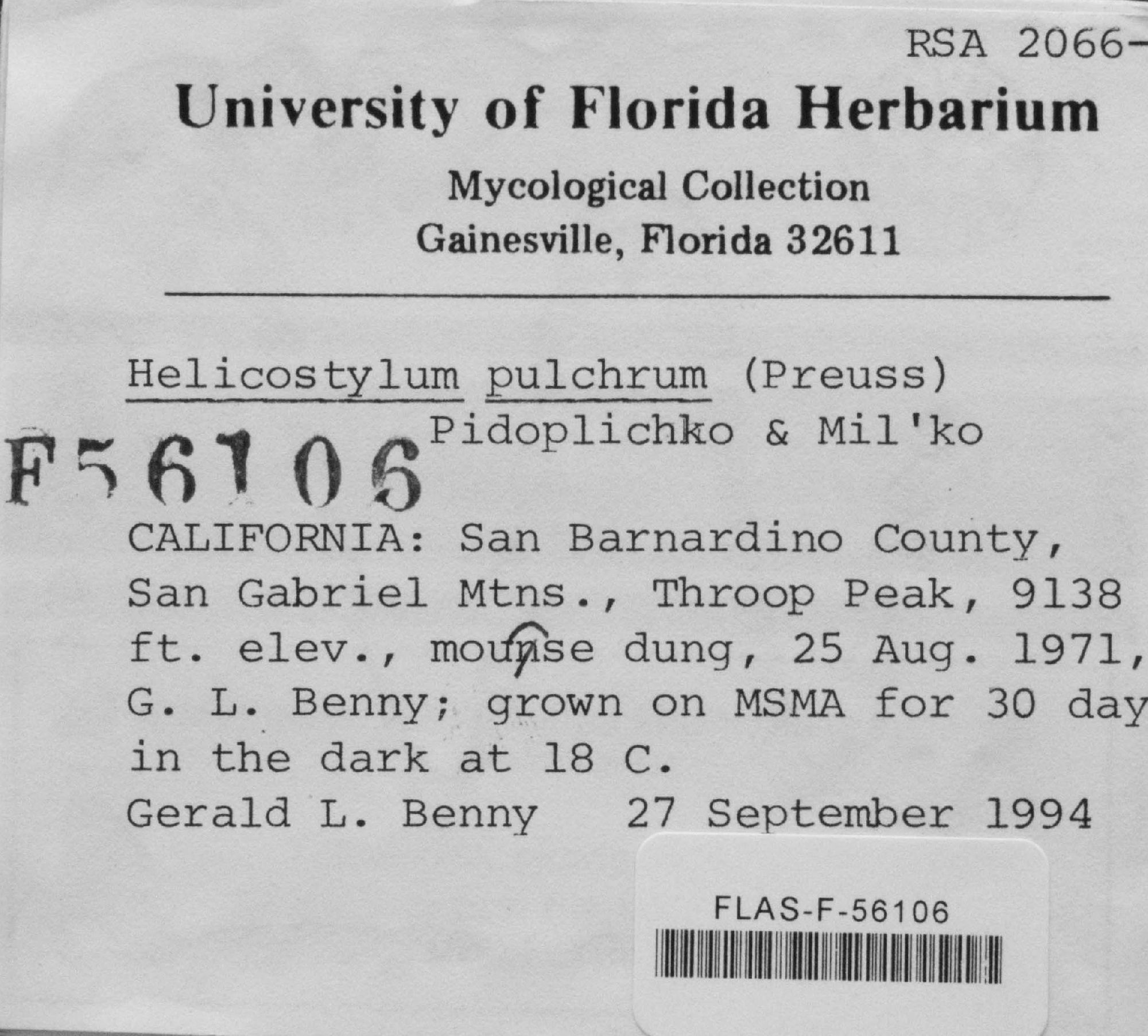 University of Florida Herbarium - Fungi (FLAS-)