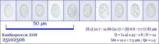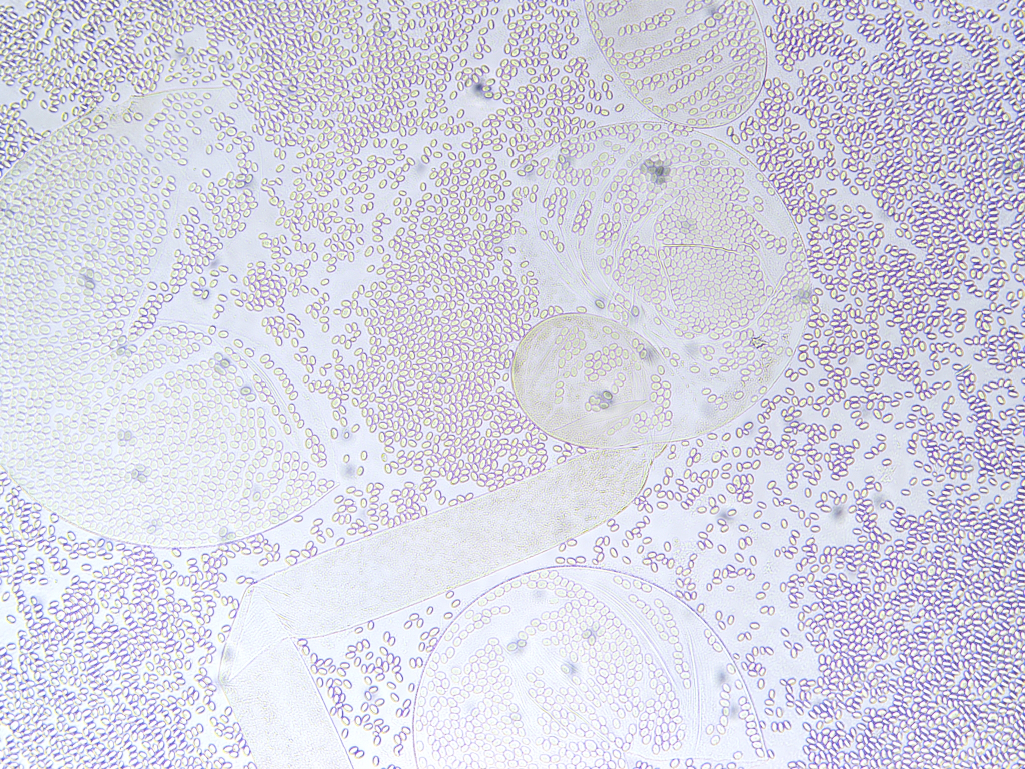 Sporen: Sporen länglich oval, 8—13 µm lang, 5—8 µm breit, glatt und dünnwandig, farblos, gehäuft gelblich. Zygosporen rundlich bis etwas oval, 100 µm dick, 120 µm lang, schwarz, warzig.