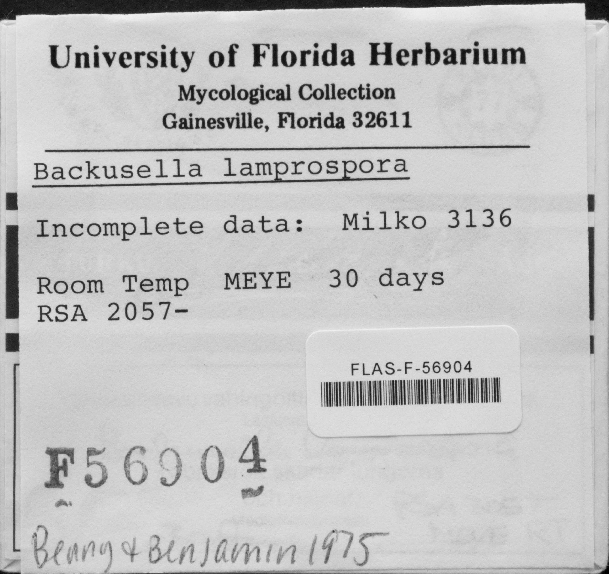 University of Florida Herbarium - Fungi (FLAS-)