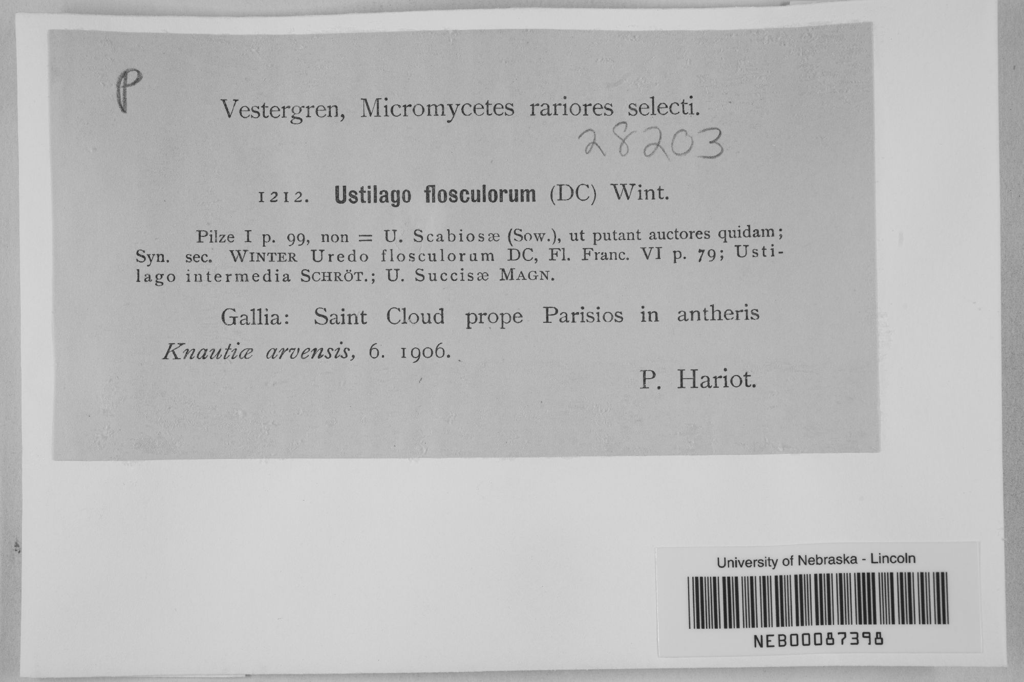 Ustilago flosculorum (DC.) Fr. 1832