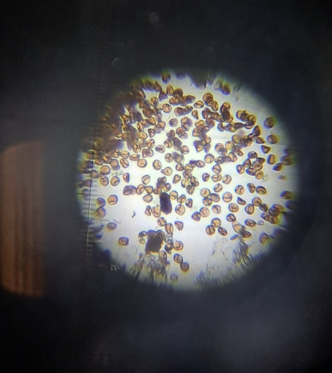 Sporen: Teleutosporen in schwarzbraunen, oft ringförmig gestellten Häufchen, elliptisch oder fast kugelig, 20—26 µm lang, 17—20 µm breit. Membran dunkel kastanienbraun, an den Seiten, besonders am Scheitel, mit flachen, stumpfen, manchmal undeutlichen, gleichfarbigen Höckern versehen. Stiel zart.