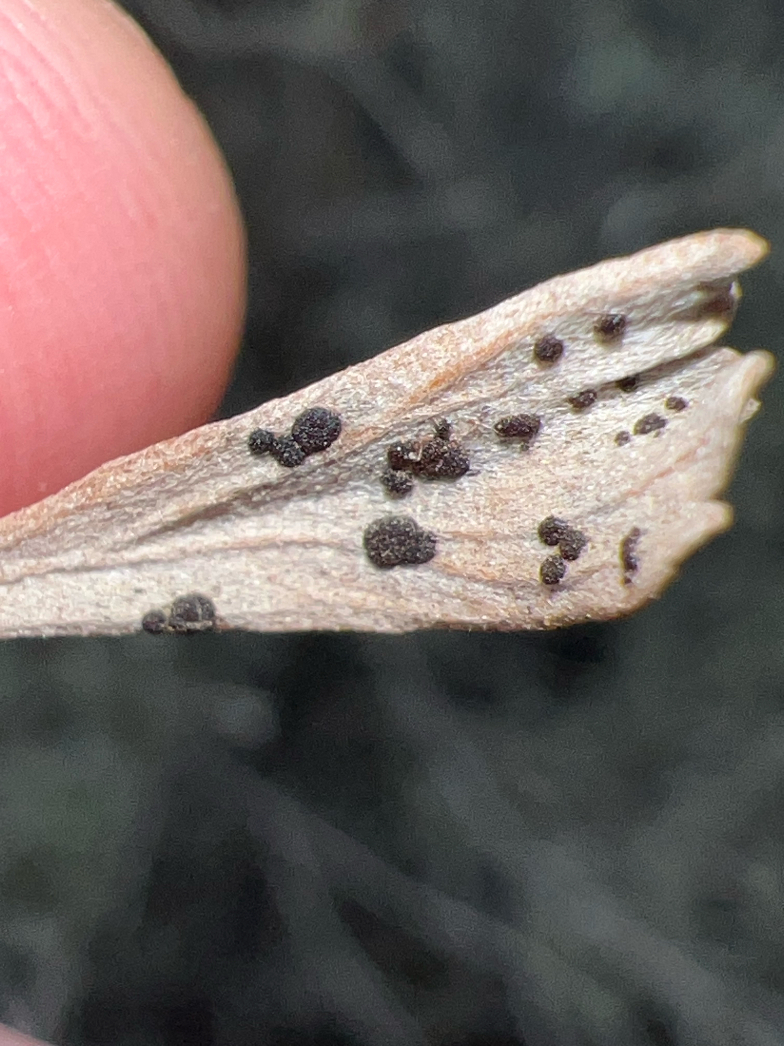 Fruchtkörper: Uredosporenlager meist zerstreut oder in Gruppen auf der Blattunterseite, rundlich oder länglich, blassbraun, pulverig. Teleutosporenlager meist auf der Blattunterseite, zerstreut oder gruppenweise, klein, rundlich, bald nackt, schwarzbraun.