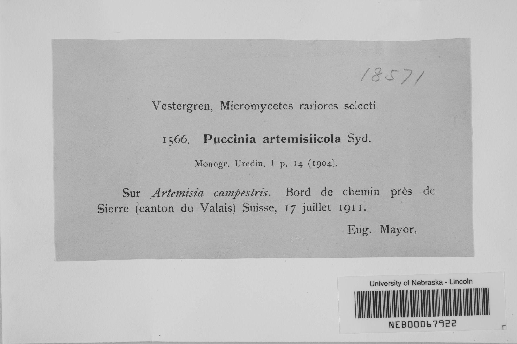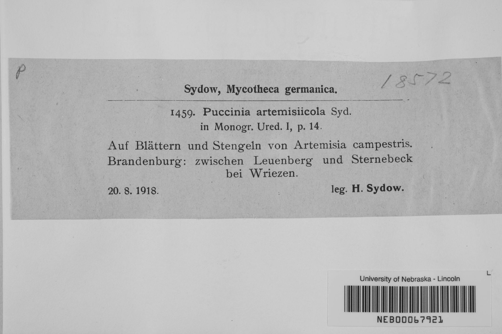 Leptopuccinia artemisiicola (P. Syd. & Syd.) Syd. 1922