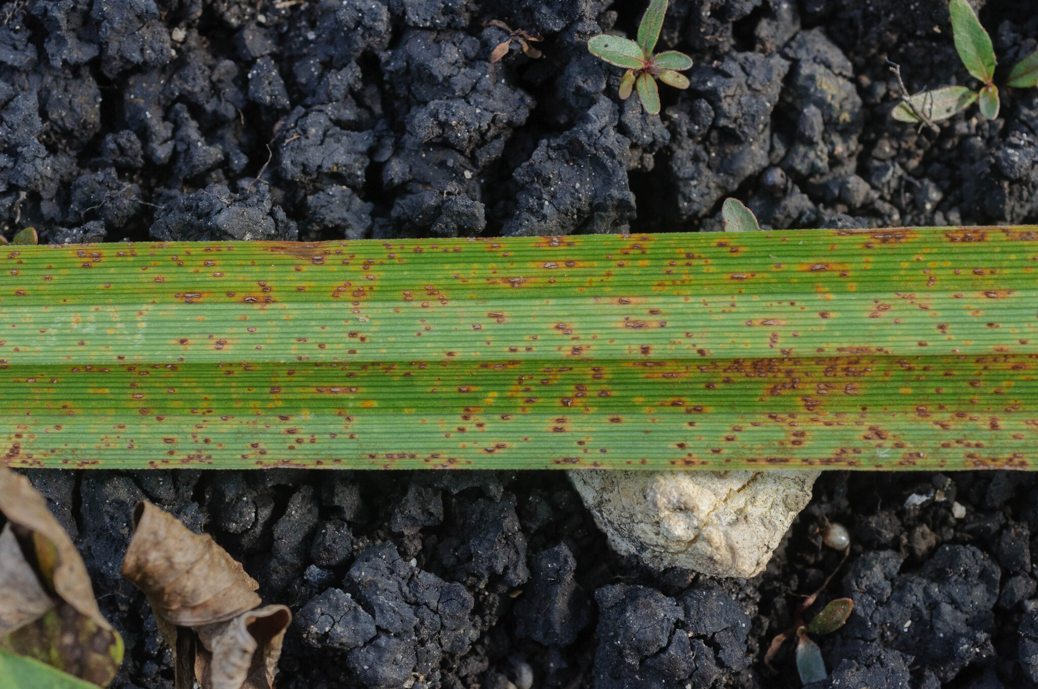 Sporen: Uredosporen kugelig, ellipsoidisch oder eiförmig, 20—35 µm lang, 16—26 µm breit, dickwandig, stachelig, ockergelb. Teleutosporenlager blattunterseits, unregelmässig zerstreut, mitunter zusammenfliessend, selten rundlich, gewöhnlich länglich bis strichförmig, bald nackt, schwarzbraun. Teleutosporen ellipsoidisch, keulenförmig oder länglich, am Scheitel stark, bis 14 µm verdickt, dunkler und meist abgerundet, seltener gestutzt oder verschmälert, in der Mitte eingeschnürt, am Grunde abgerundet oder häufiger in den Stiel verschmälert, 30—52 µm lang, 14—22 µm breit, glatt, gelbbraun, mit bräunlichem, festem Stiel. Keimporus der oberen Zelle am Scheitel oder daneben, der der unteren undeutlich.