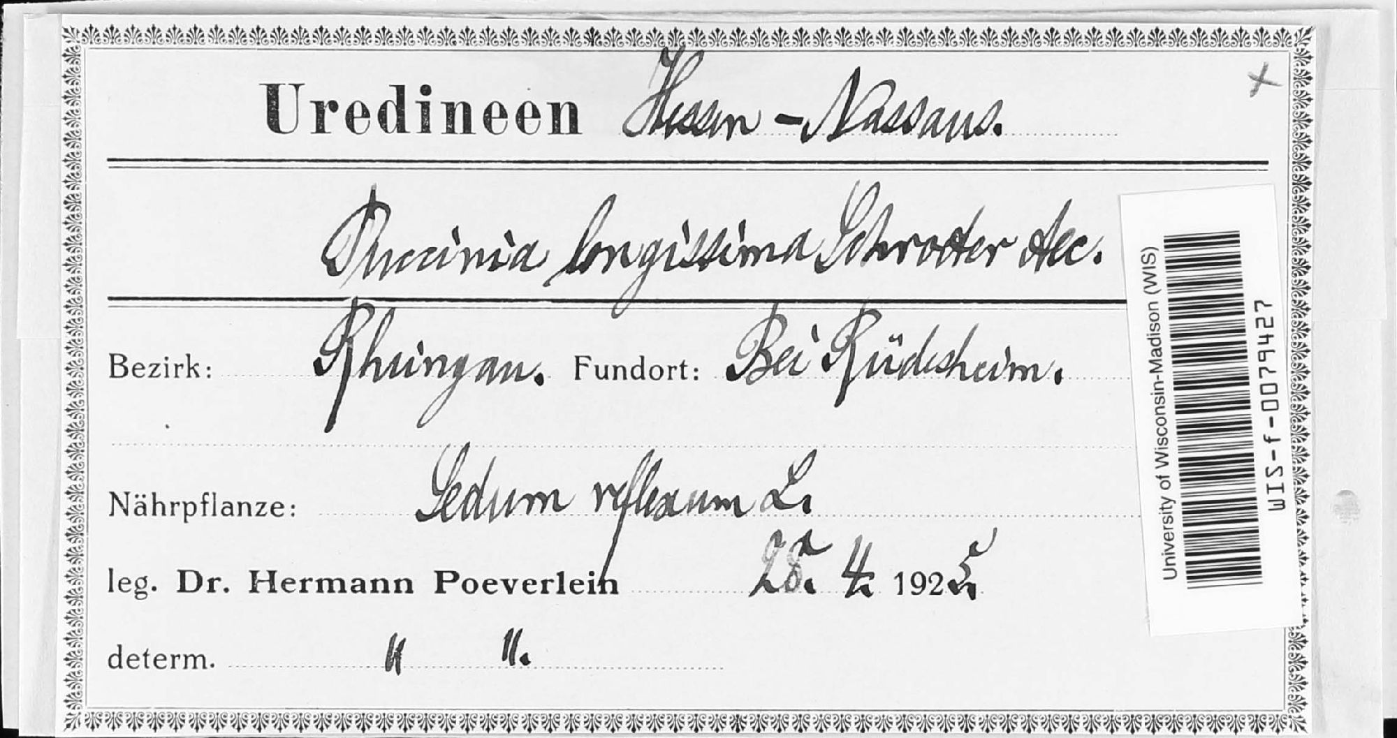 Vorkommen: Heteröcisch. Aecidien auf Sedum acre (Scharfer Mauerpfeffer) und boloniense, Uredo- und Teleutosporen auf Zierliche Schillergras oder Steppen-Schillergras (Koeleria macrantha) , (Koeleria glauca) Blaues Schillergras, gracilis.