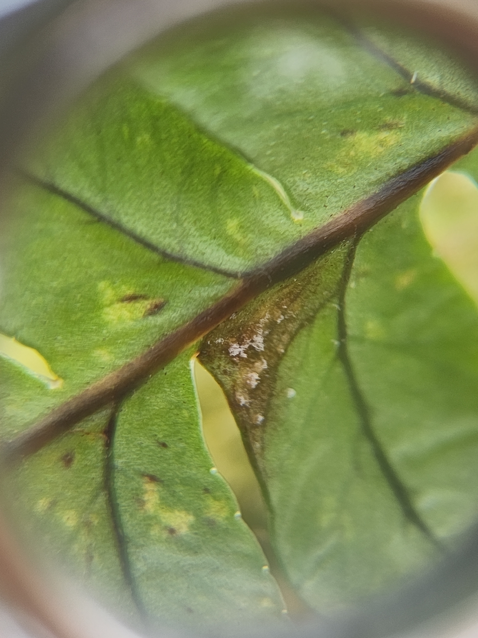 Fruchtkörper: Uredosporenlager blattunterseits, zerstreut auf braun verfärbten Abschnitten, blasenförmig, unter der Epidermis entwickelt, mit Pseudoperidie, später am Scheitel geöffnet, staubig.
