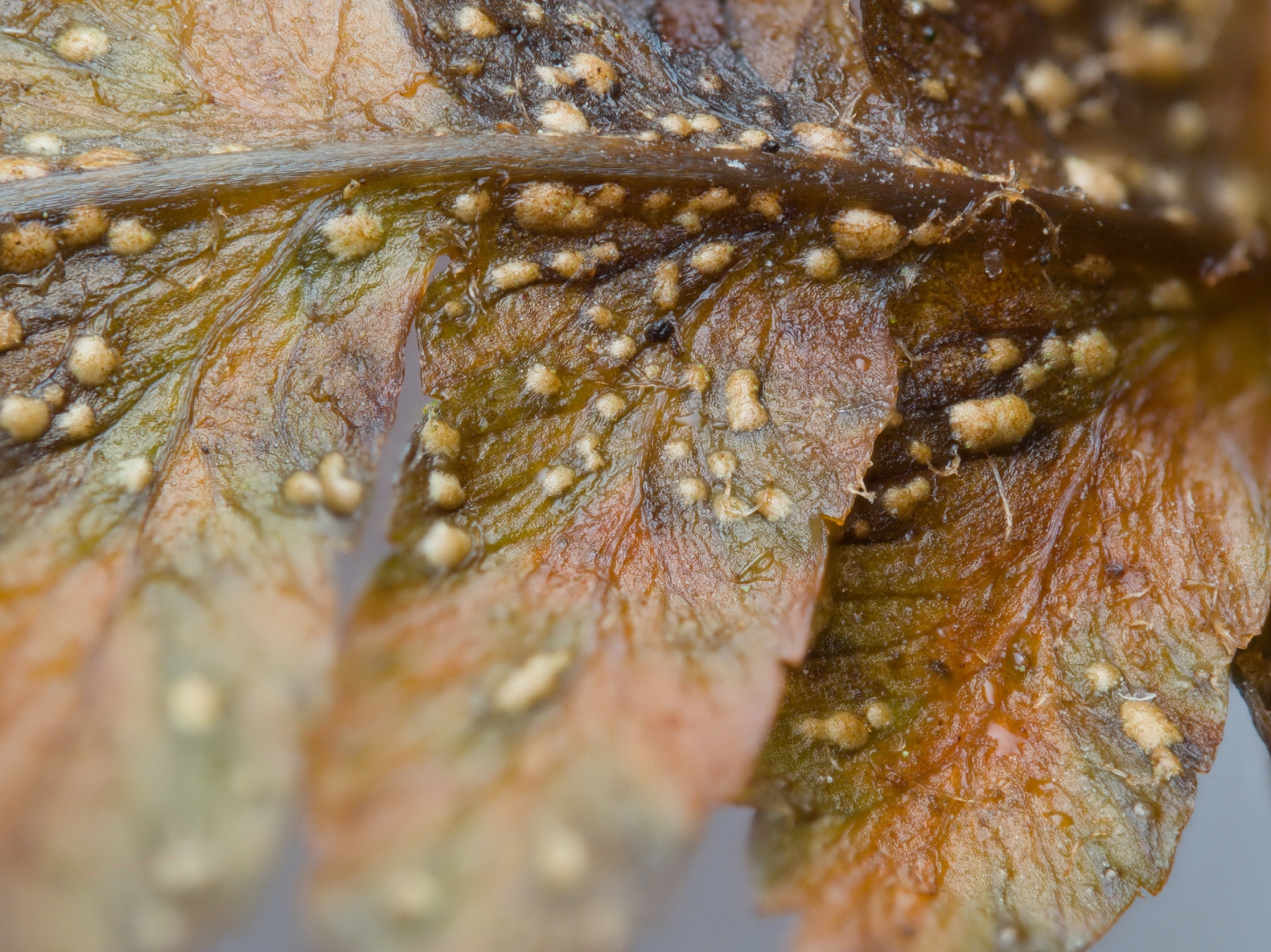 Vorkommen: Auf Gelappter Schildfarn, Glanzschildfarn oder Dorniger Schildfarn (Polystichum aculeatum).