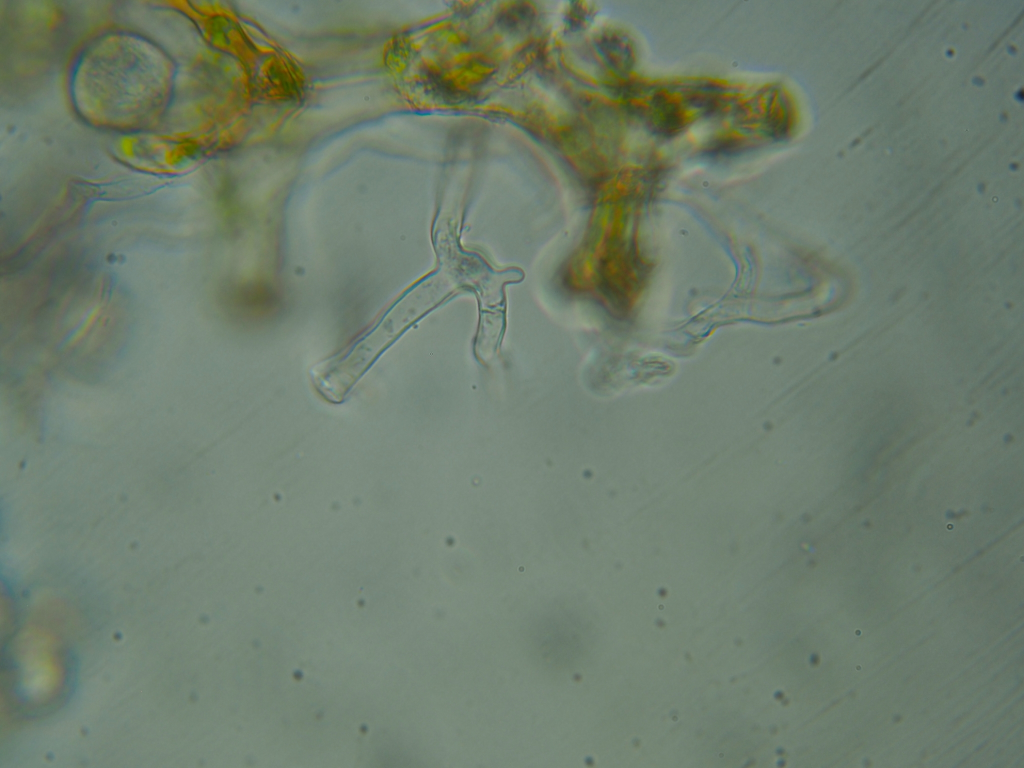 Sporen: Uredosporen eiförmig bis elHpsoidisch, 30—40 µm lang, 15—17,5 µm breit, mit entfernt stacheliger, farbloser Membran. Teleutosporen in den Zellen der Epidermis der Blattunterseite, vier- bis achtzellig, farblos, ein- bis zweischichtig, Sporen der unteren Schicht viel niedriger.