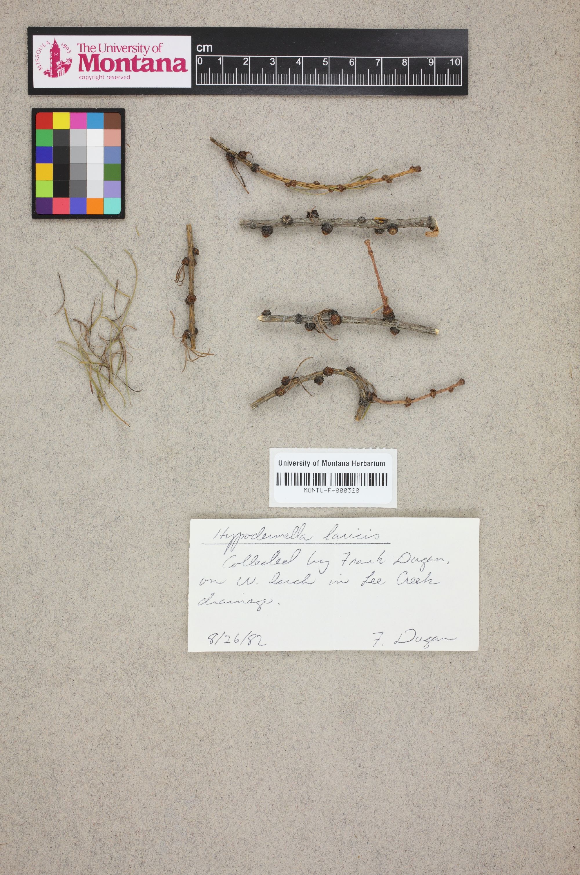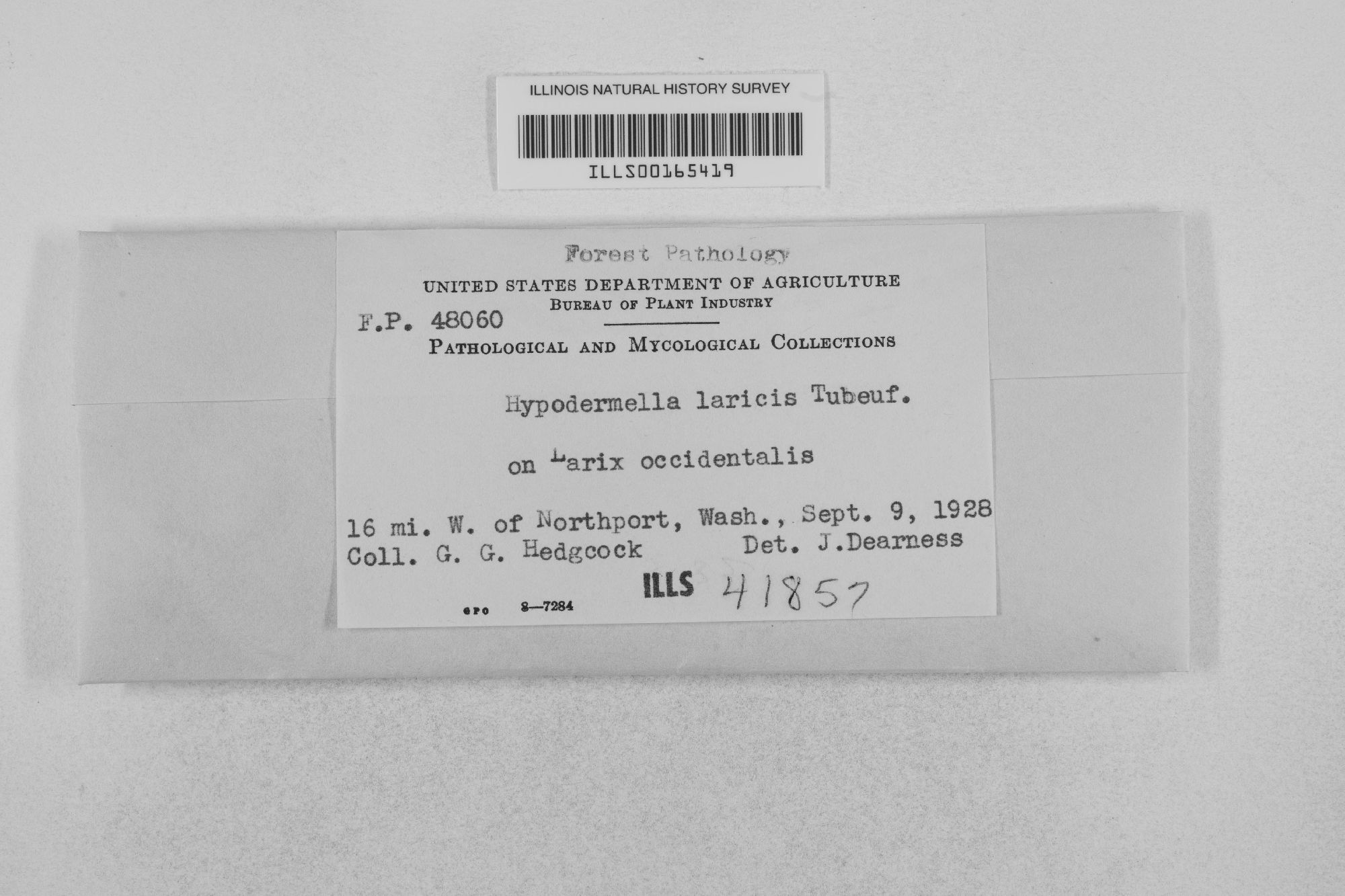 Fruchtkörper: Fruchtkörper glänzend schwarz, einzeln oder zusammenfliessend in einer Längslinie auf der Oberseite der Nadeln, mit einer Längsspalte sich öffnend. Schläuche zylindrisch, oben abgerundet, fast ungestielt, etwa 110 µm lang, viersporig.