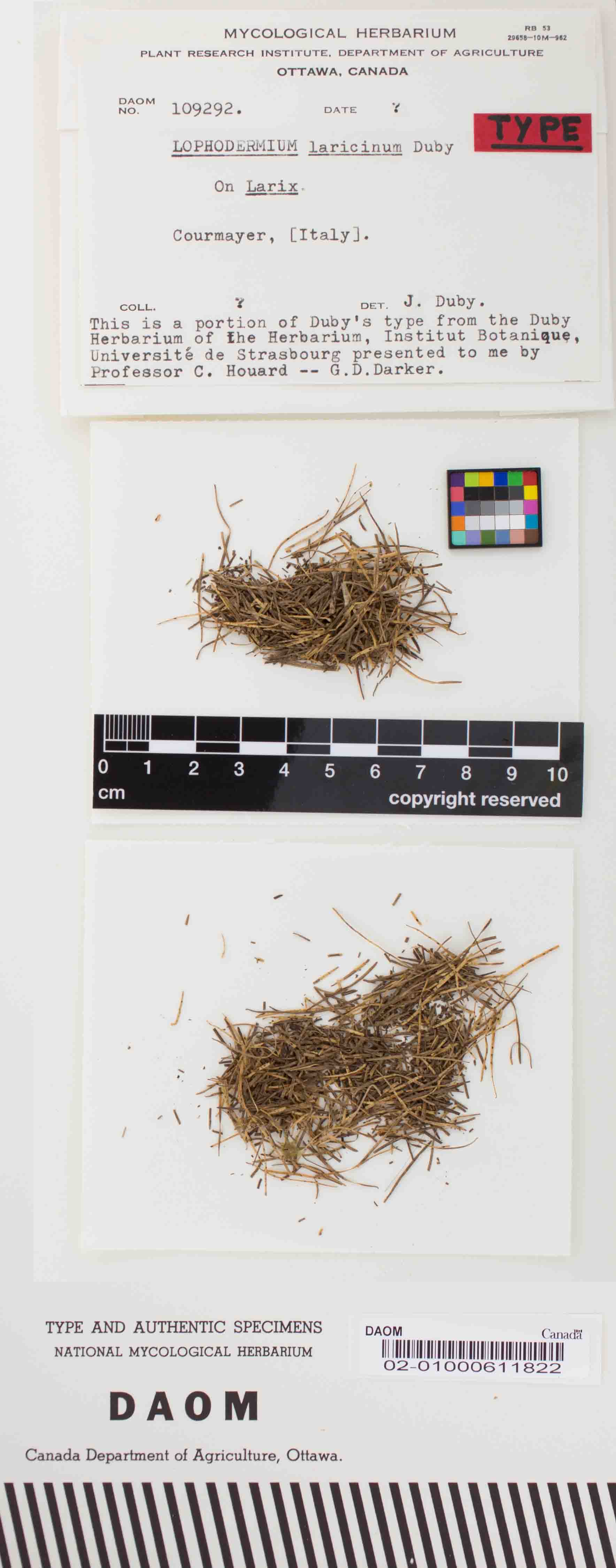 Fruchtkörper: Apothecien zerstreut, auf abgeblassten, durch eine zarte, schwarze Linie begrenzten Flecken, eingewachsen, gewölbt hervortretend, eiförmig- länglich oder elliptisch, einfach, oft glänzend schwarz, mit zartem Längsspalt und scharfen, aneinanderliegenden Rändern, 0,1 bis 1 mm lang, 0,3-0,5 mm breit.