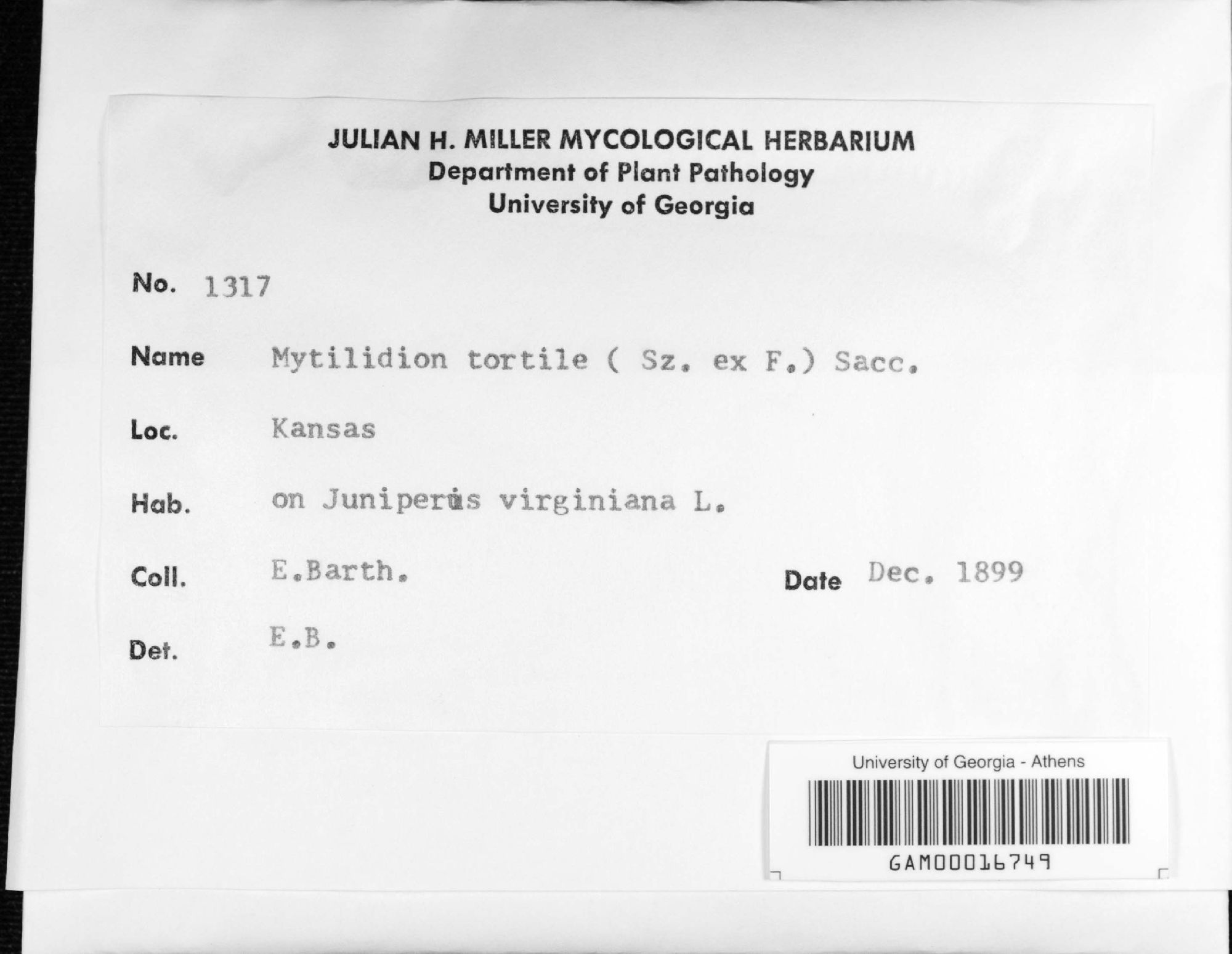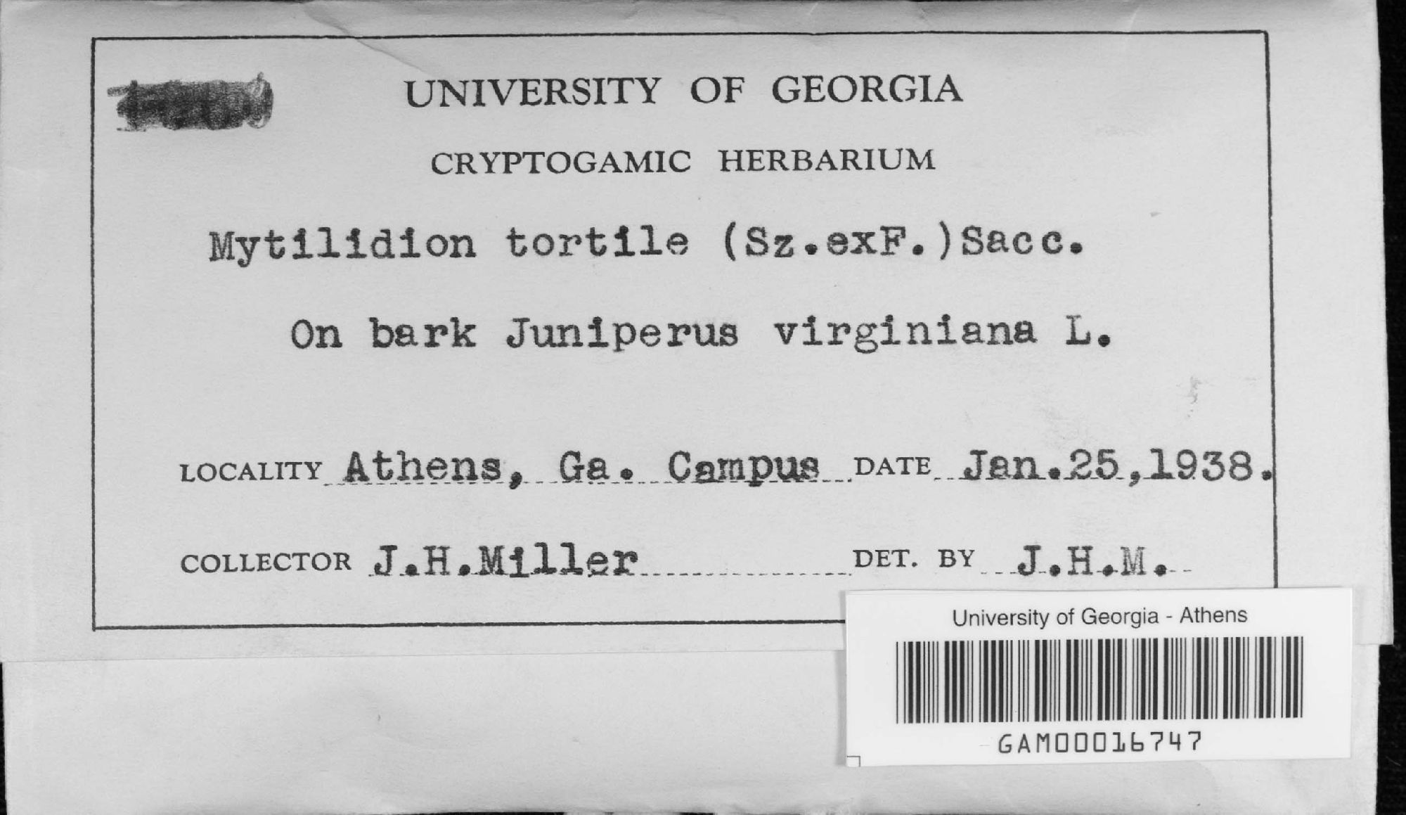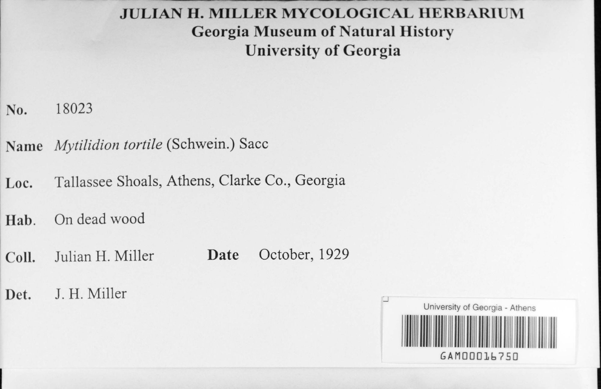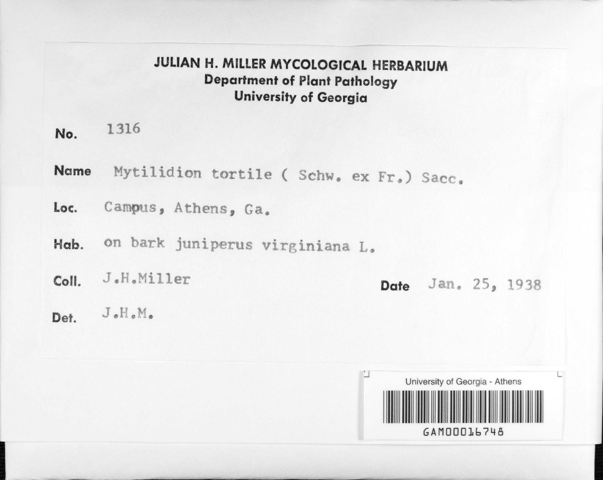 University of Georgia, Julian H. Miller Mycological Herbarium (GAM-)
