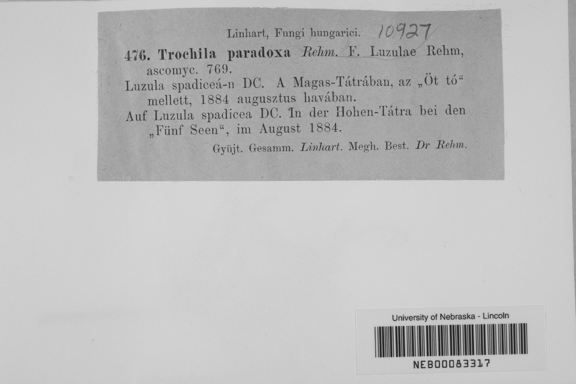 Trochila paradoxa (Rehm) Rehm