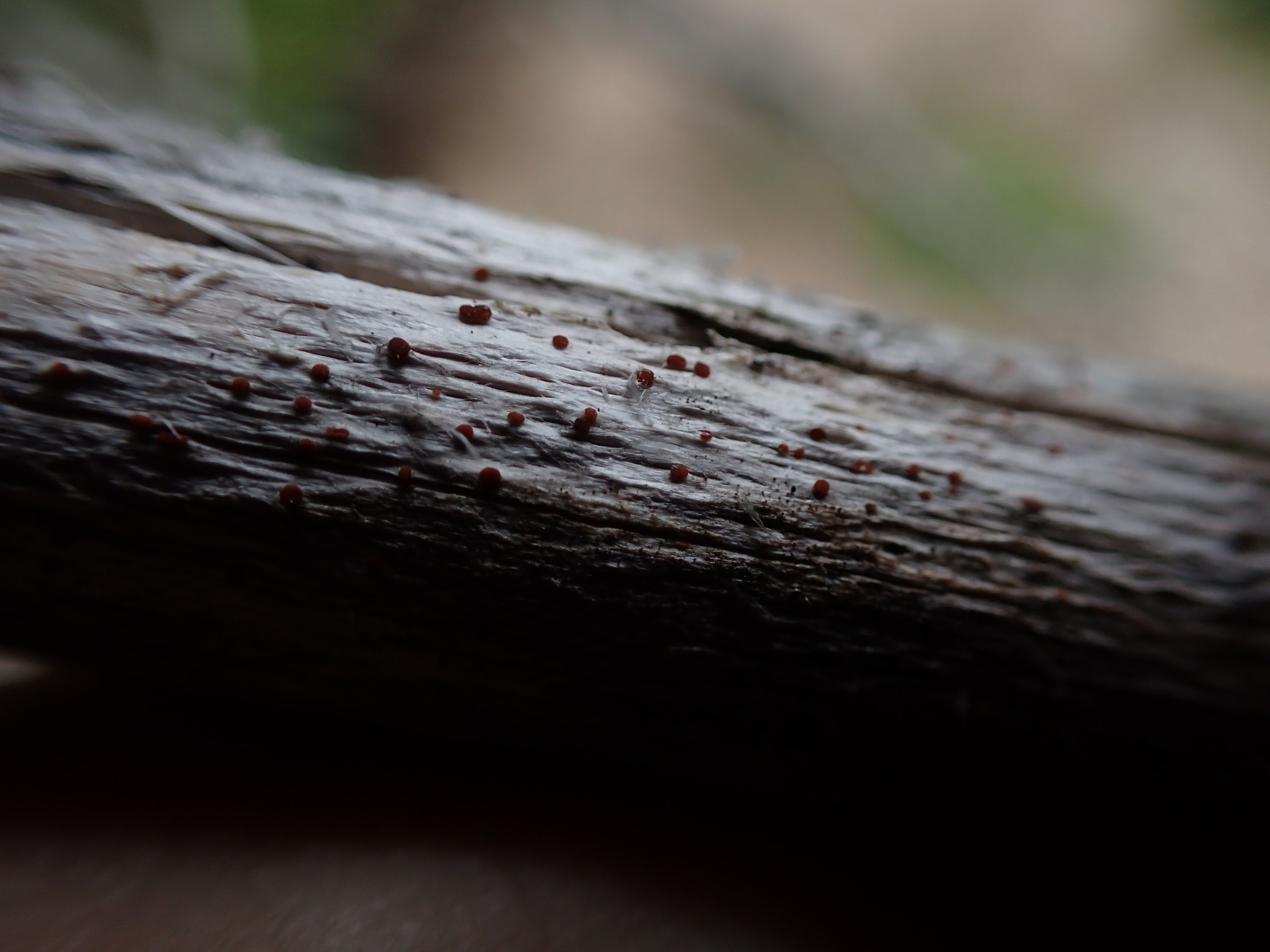 Vorkommen: Auf entrindeten Ästen und Stämmen an sonnigen Stellen (Rosen - Rosa), Kiefer - Pinus).