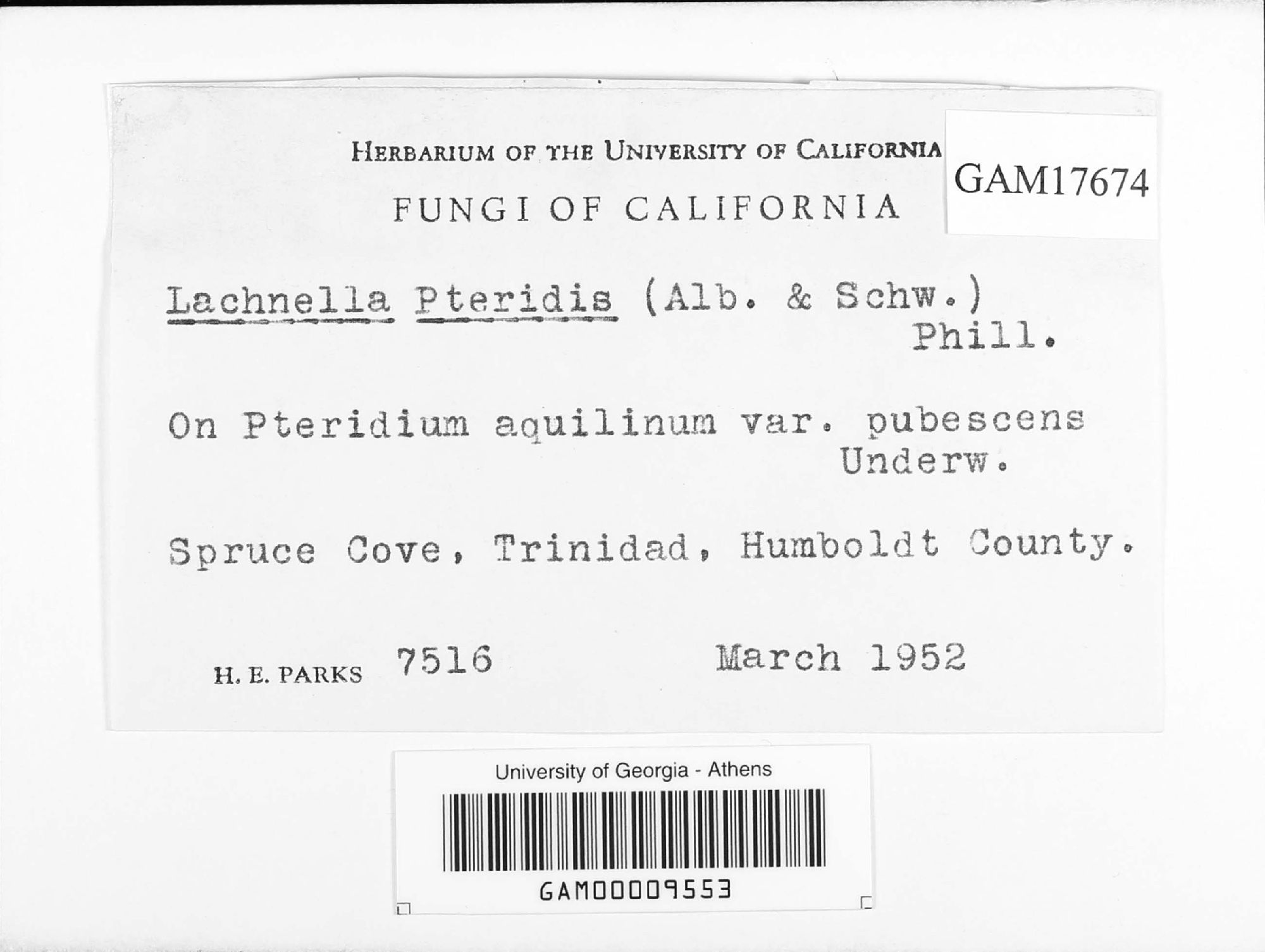 University of Georgia, Julian H. Miller Mycological Herbarium (GAM-)