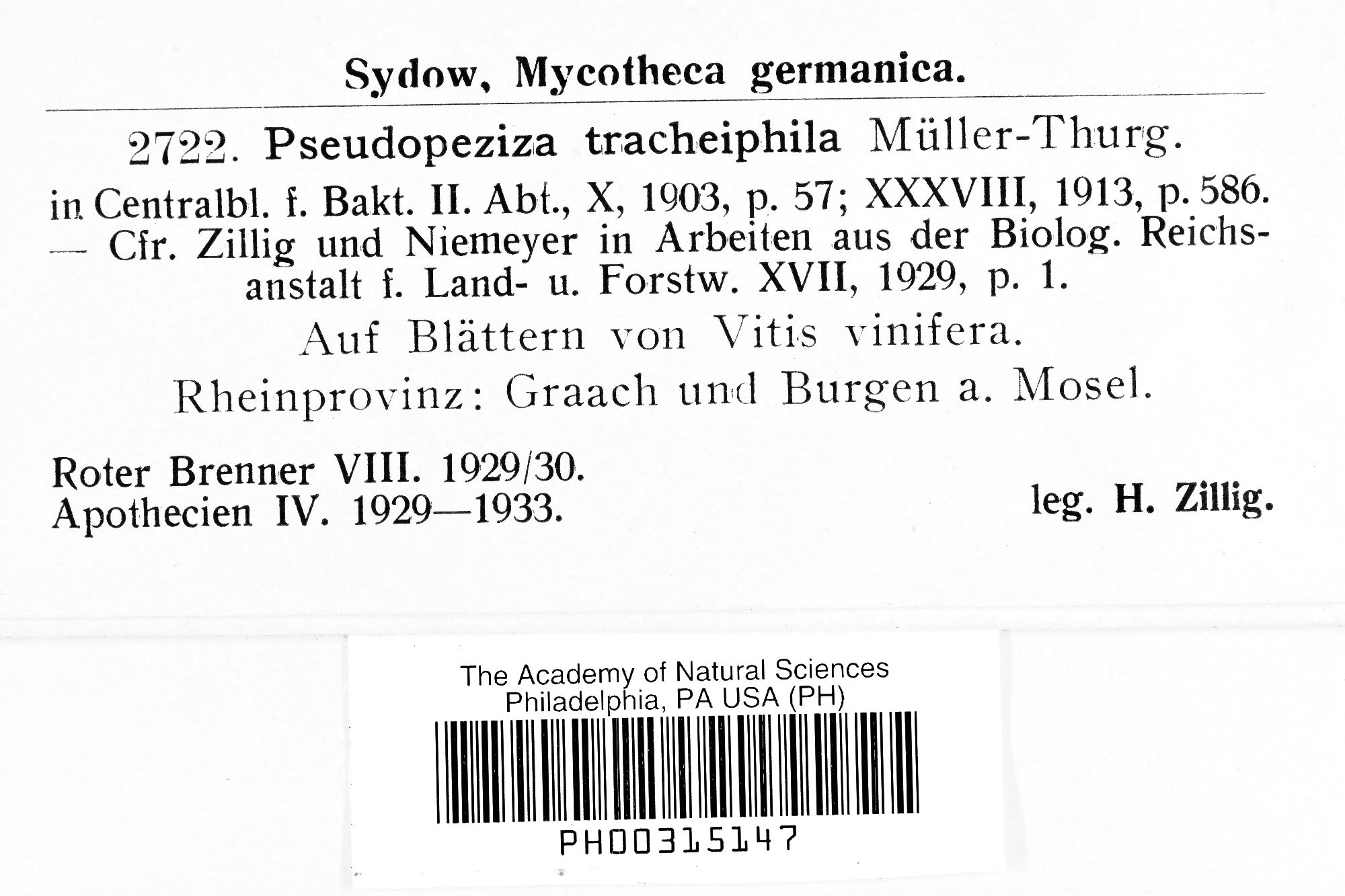 Pseudopeziza tracheiphila Müll.-Thurg. 1903